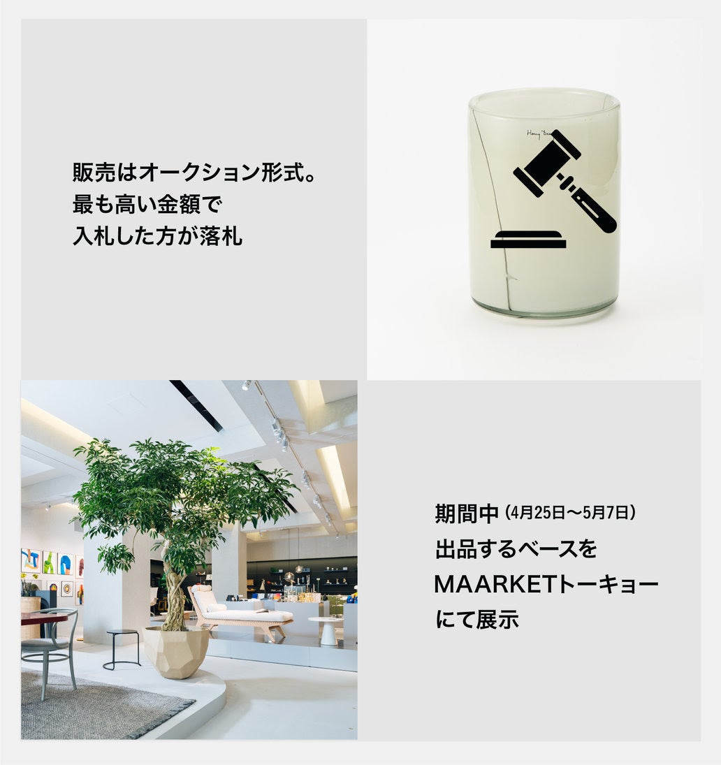 また、同期間中、東京・外苑前のインテリアストアMAARKETトーキョーにて出品するベースの展示を行います。質感や色合いをお確かめいただけます。