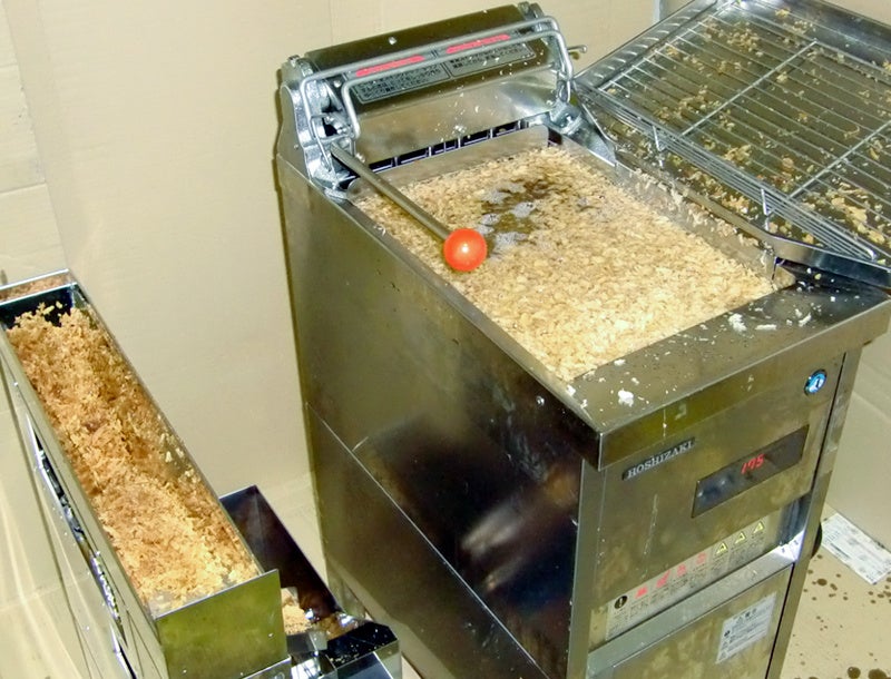 従来、揚げカスに含まれた油は揚げカスとともに廃棄されていました。