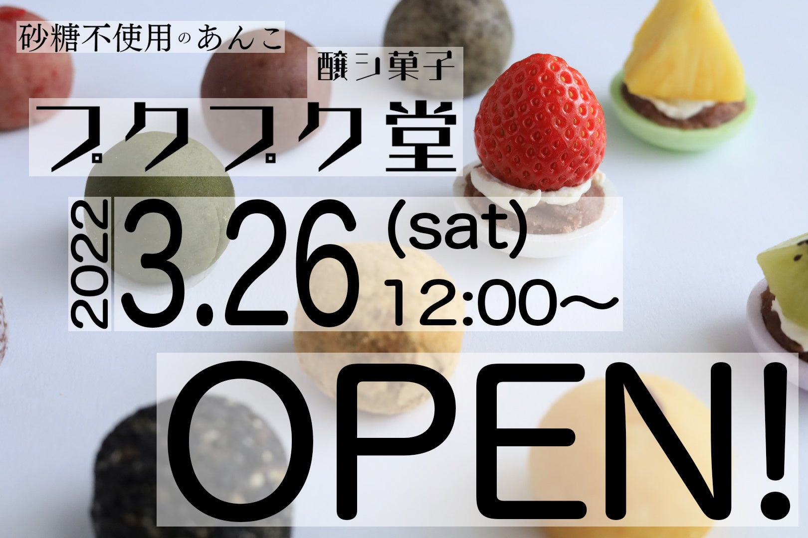 【発酵あんこブランドのお菓子屋オープン】砂糖不使用、オリジナル糀で醸した発酵あんこブランド「醸シ菓子 プクプク堂」2022.3.26(sat)OPEN!
