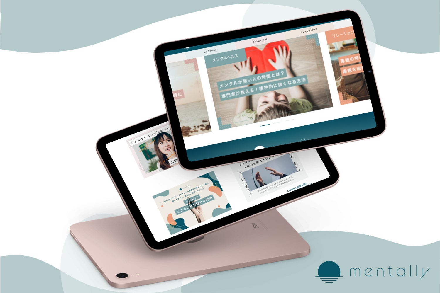 Webメディア「mentally」は、「つらいが、わかる。つらいが、かわる。」をコンセプトに掲げ、メンタルヘルス・ウェルビーイングにまつわる、さまざまな情報をワンストップで見ることができるwebメディアです。