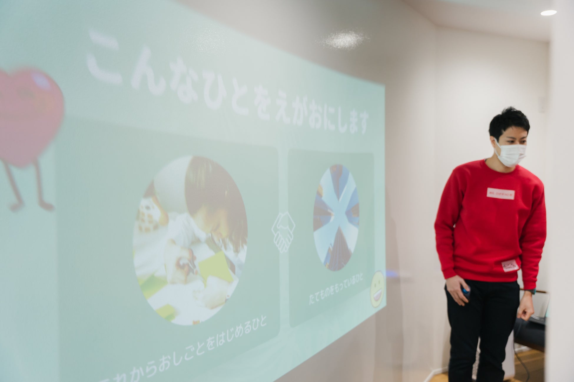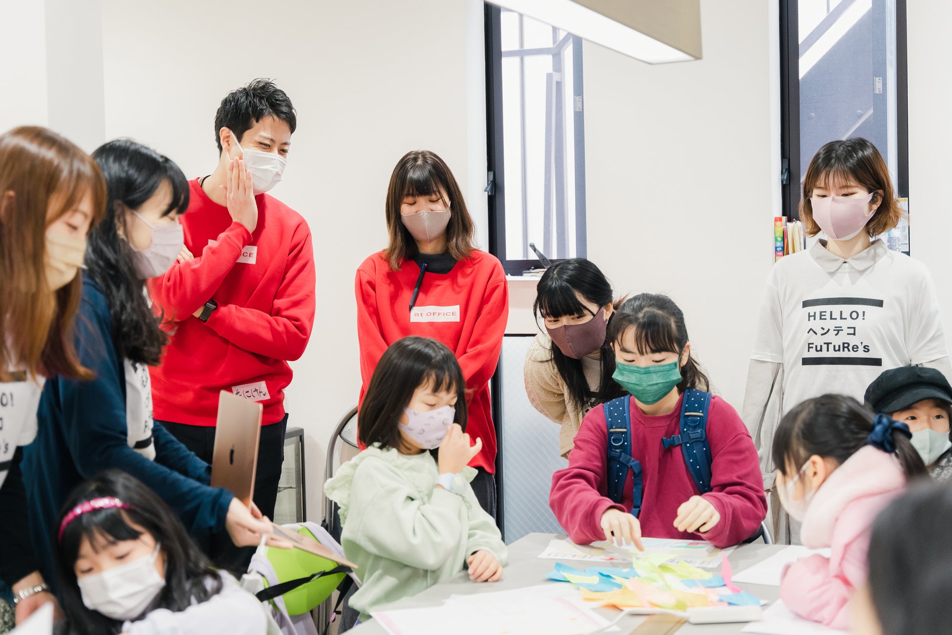 アットオフィスは、オフィス移転のコンサルティングを通して、中小企業やベンチャー企業を支援しています。『HELLO! "ヘンテコ" FuTuRe’s Town 2022』プロジェクトに参加する小学生たちは、自由な発想で新しい仕事を生み出す、未来の起業家。つまり、プロジェクトへの協賛は、超シード期の小さなベンチャー社長たちへの投資です。また、あえてオフィスらしくない秘密基地のような戸建てオフィスを紹介することにより、働く場所づくりも自由だというメッセージになればと、「at Labo」で会場協力。今回は会場だけでなく、有志社員5名がメンターとして参加し、小学生たちの理想の街づくりのサポートをしました。