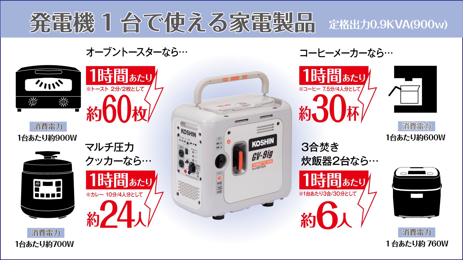 Makuake達成率19950%!! ご家庭のカセットガスだけで発電するKOSHINインバーター発電機『GV-9ig』が一般発売スタート!