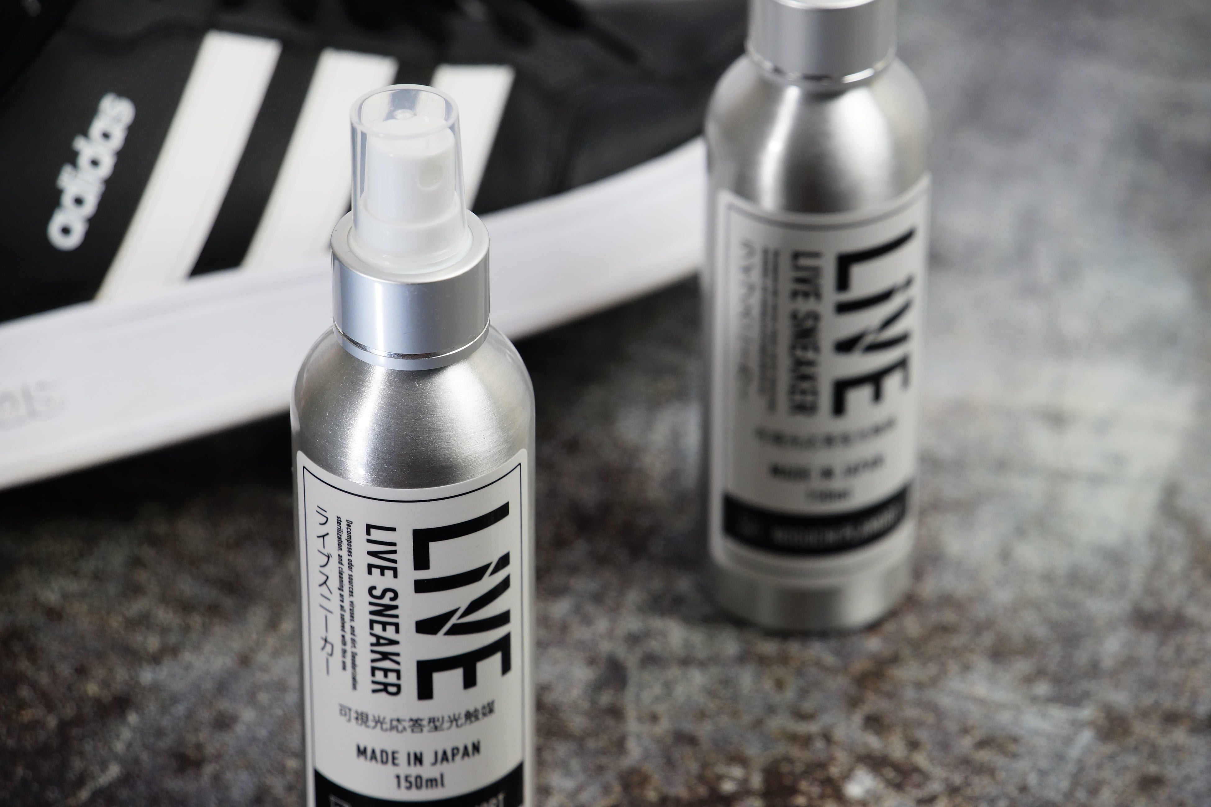 LIVE SNEAKERは光触媒を使った日本初のスニーカー用CLEANERです。 スニーカーに吹き付け、数分程太陽または照明に当てる事で光触媒効果を発生させ、 スニーカーの汚れは落としはもちろん、 その後のスニーカーに汚れを付きにくくしたり、 除菌や抗菌などのウィルス対策も同時に行う事が出来ます。 また、インソールの中に吹き付ける事で 靴内部の消臭・除菌・抗菌も出来る新世代クリーナーです。