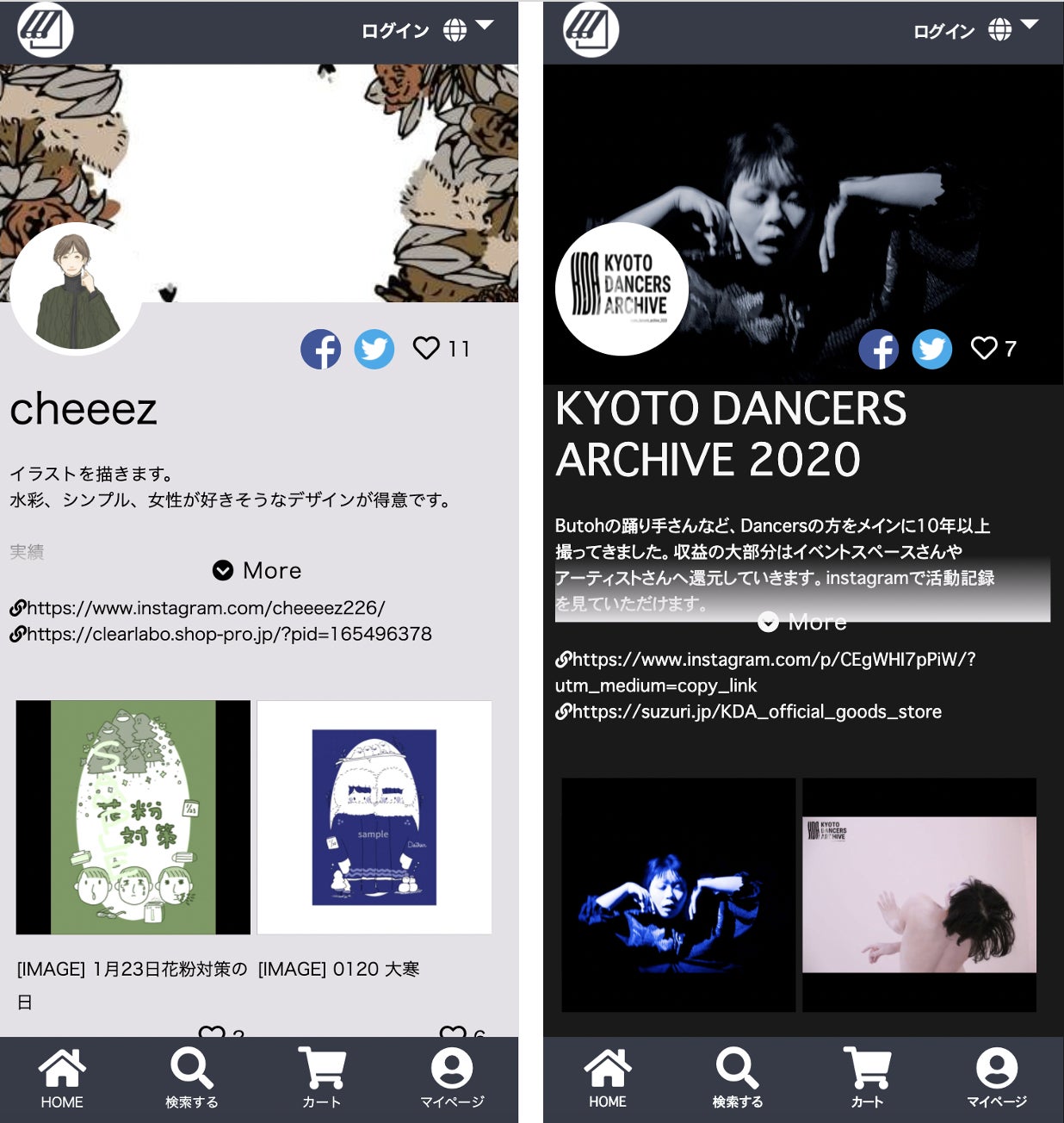 イラストレーター、フォトグラファーなど、様々な分野のクリエイターがそれぞれショップのオーナーとなり、自分の作品だけを販売できるスペースのデザインがカスタマイズできるようになっています。