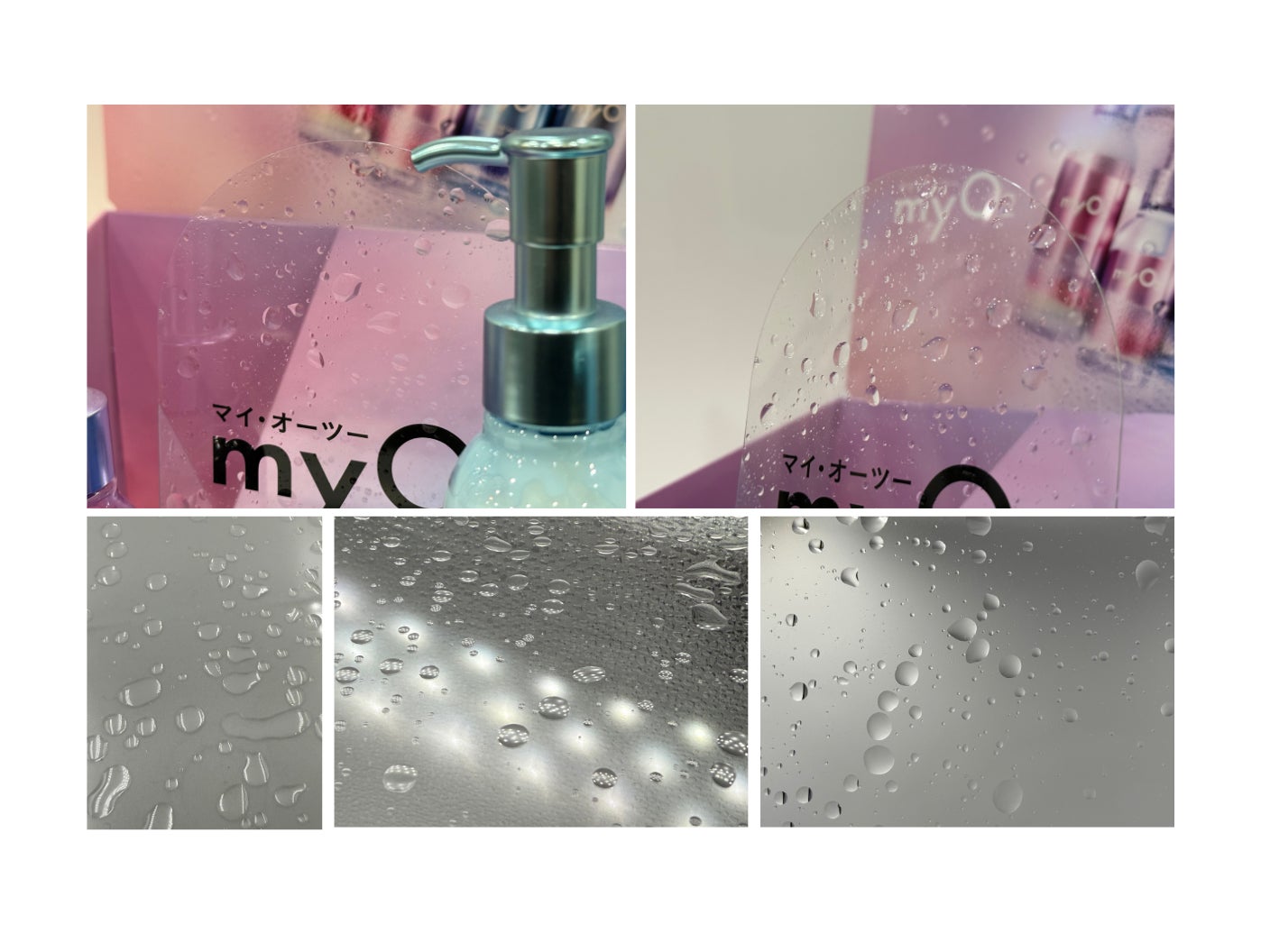 競合がせめぎ合う「化粧品の売り場」に新たな試み!リアルな水滴でブランディングを後押し!一瞬で興味を持つ。足を止めて「触れたくなる」のは必須!一瞬で「予想外、驚き、不思議」の琴線を刺激します。