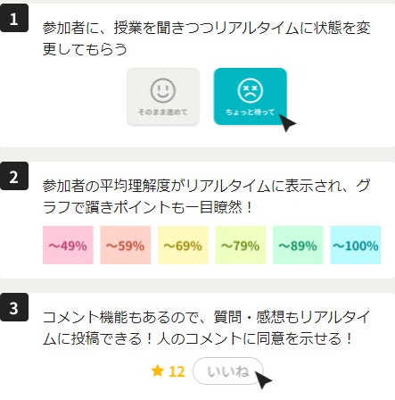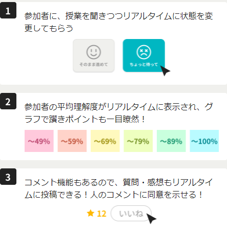 1. 受講者に授業を聞きつつ、理解度の状態を判定してもらいます。
