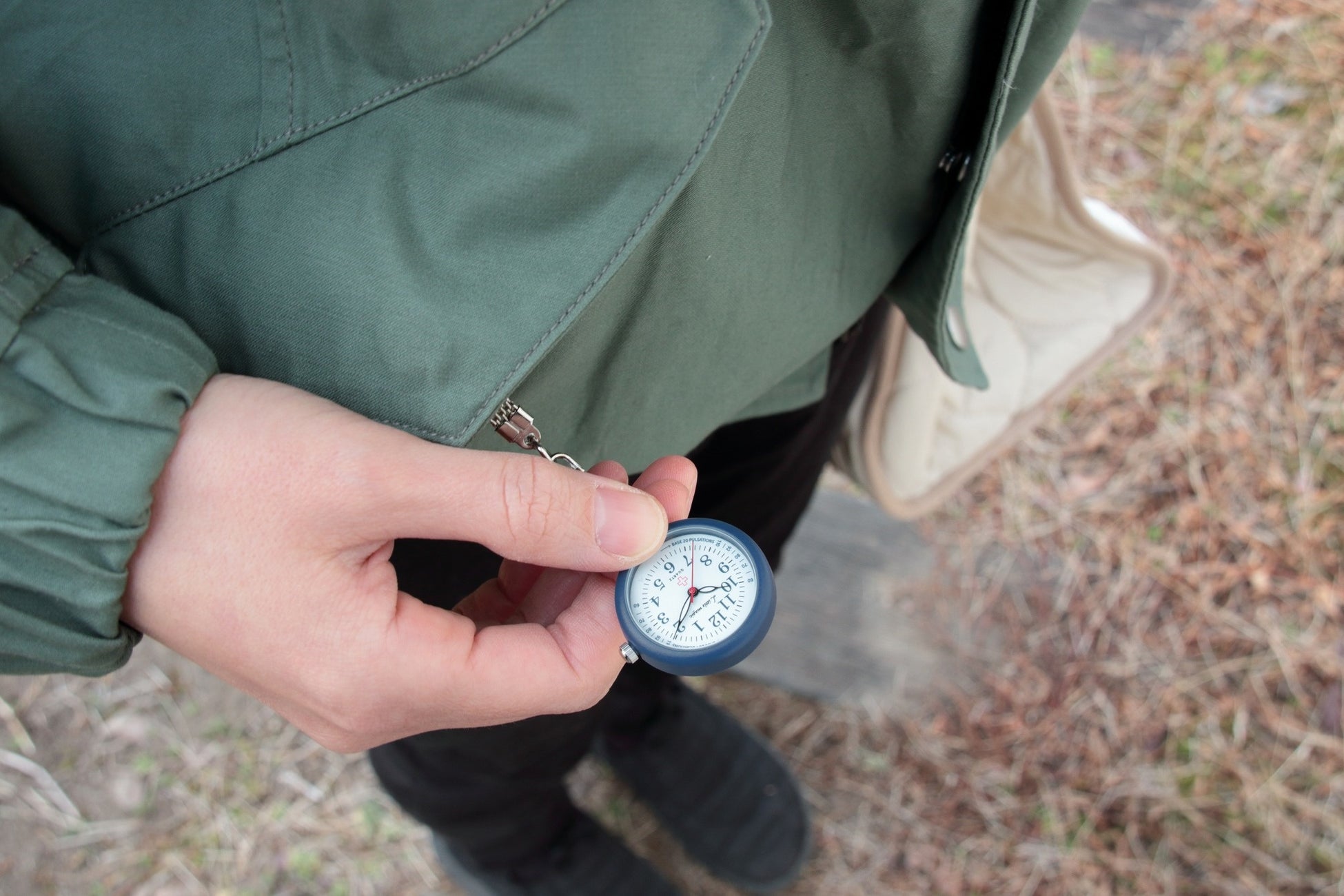 逆に新しい!普段使いにも運動時にも、汗や手元のわずらわしさを気にしないで2秒で時間確認できる懐中時計が便利
