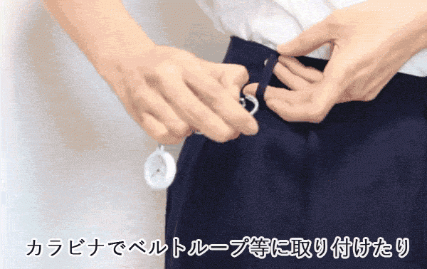 ポケットやベルトループ、カバンなどにチェーンで取り付けるだけ。
