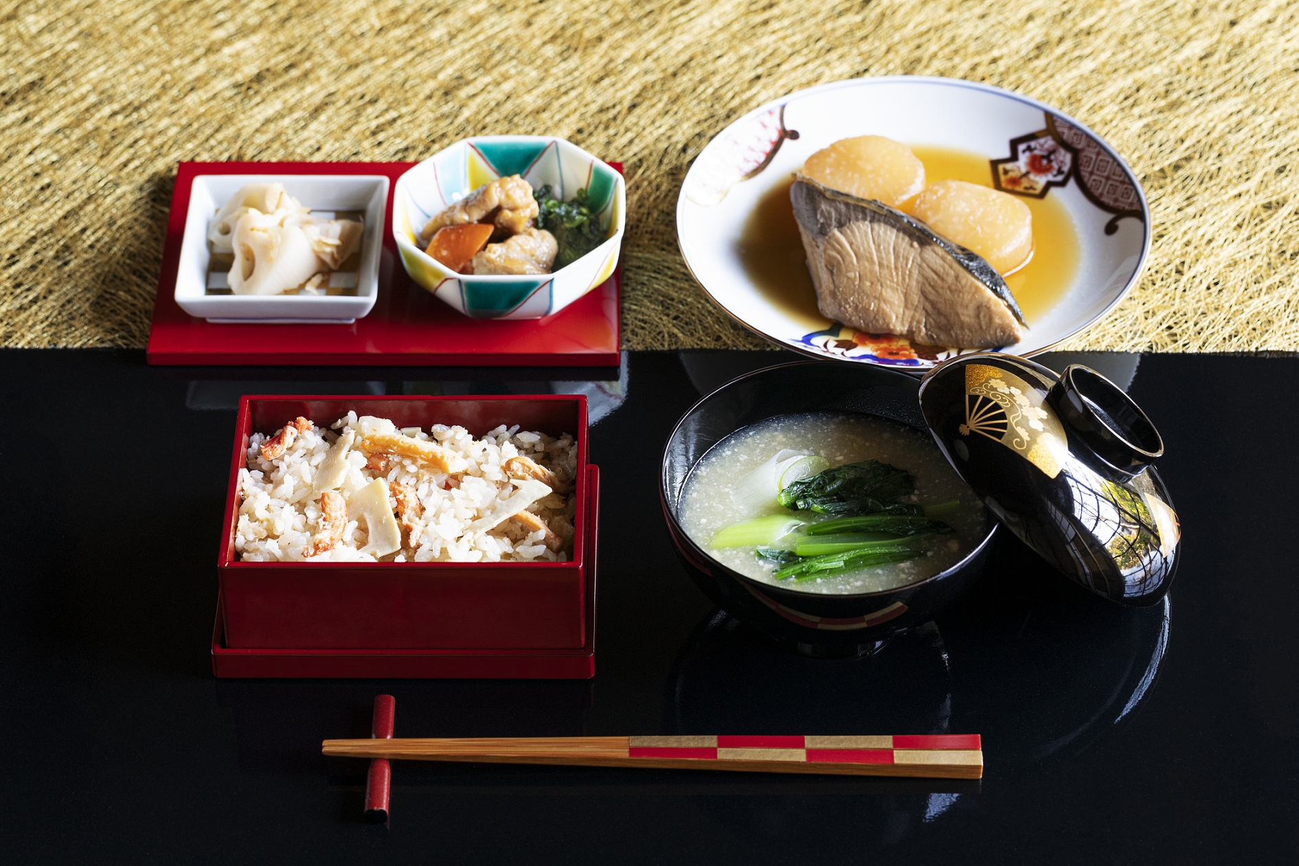 メニューは主食、汁物、主菜、副菜を組み合わせた5‐6品からなる一汁三菜以上の和食献立となっており、まるで旅館で提供されるような御膳をお楽しみいただけます。