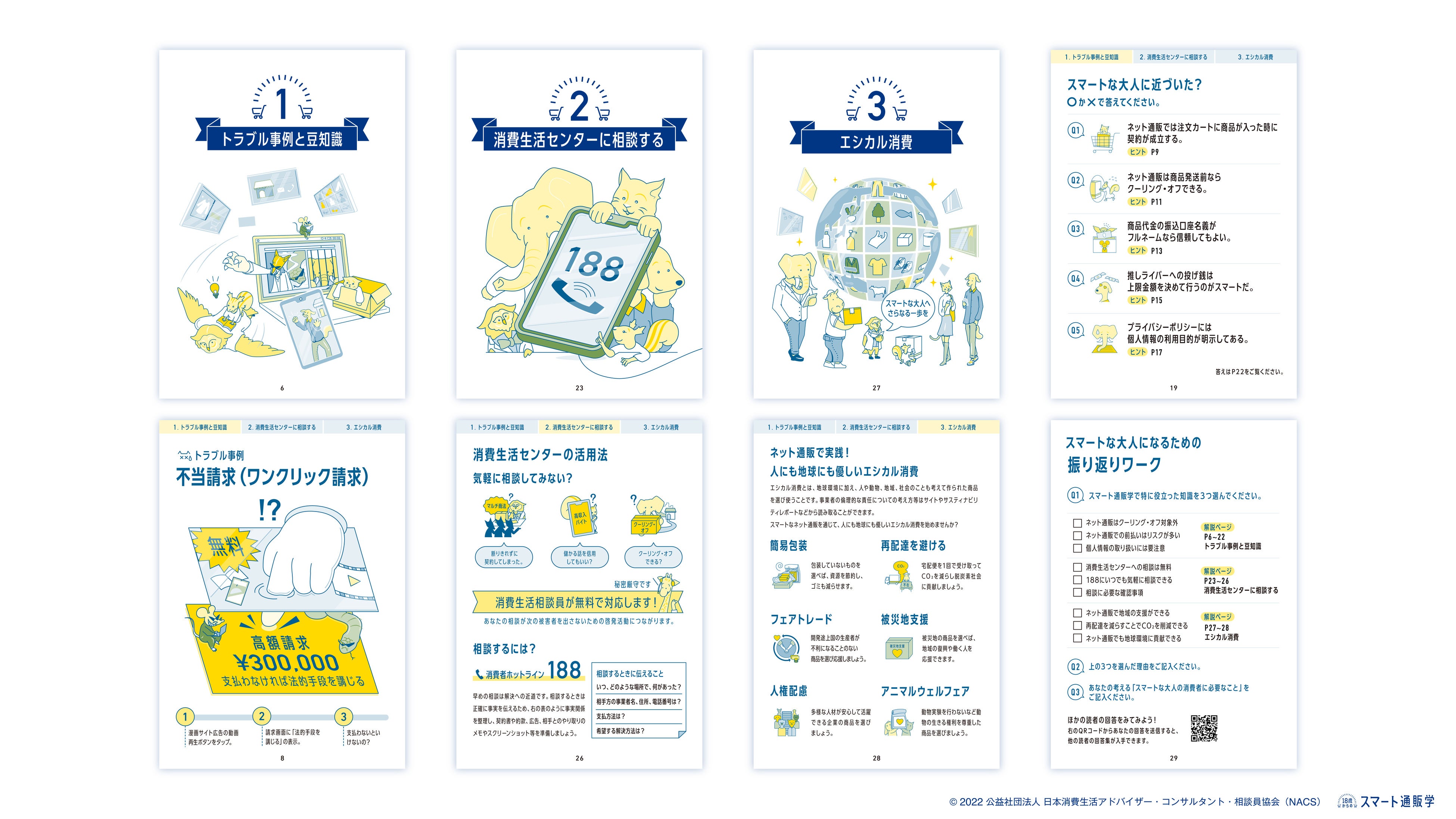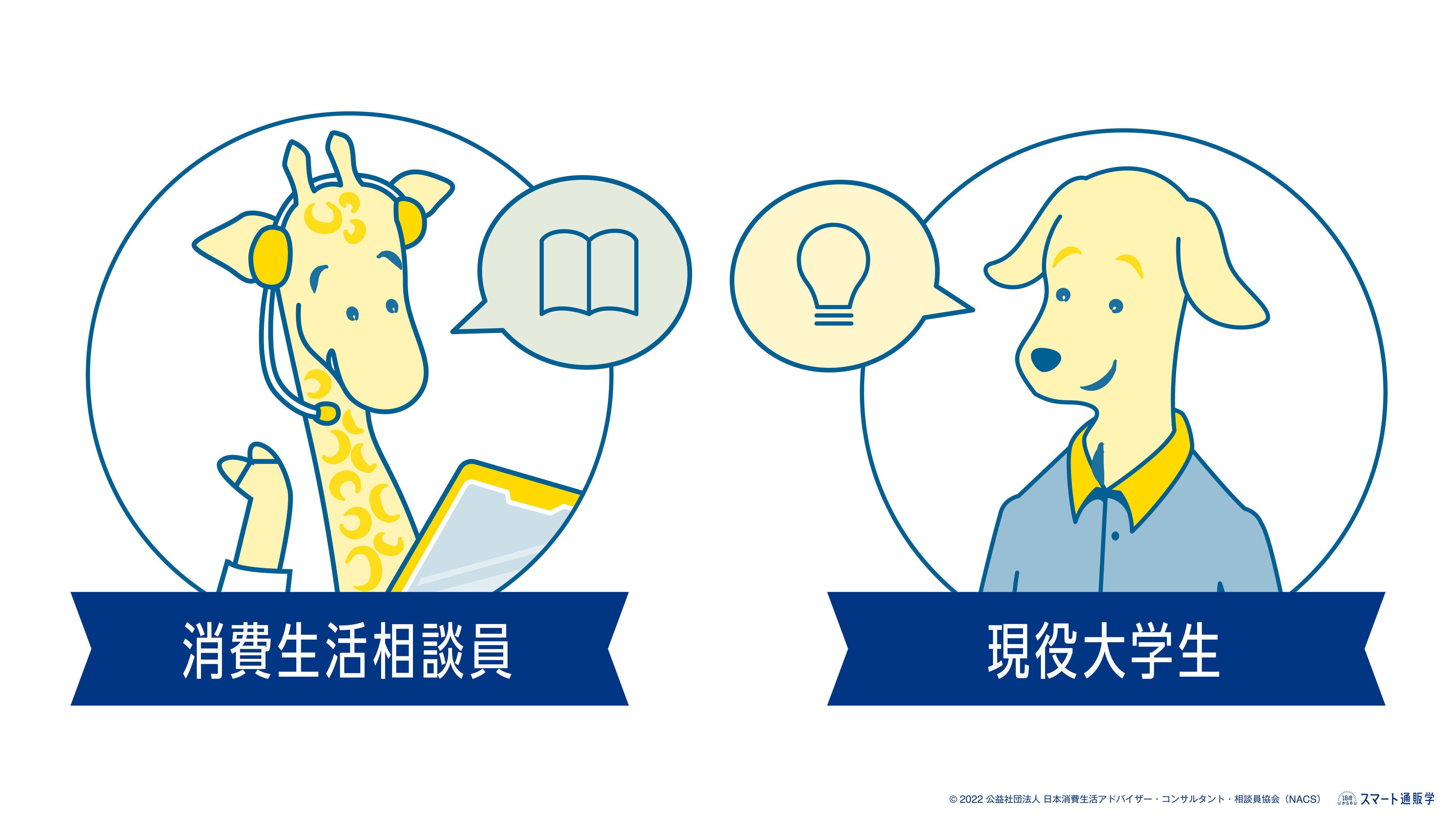 消費者問題に対する先見性をもって、消費者主権の確立と暮らしの安全・安心の構築に寄 与し続けている「NACS」と、都内私立大学や地方国立大学・大学院などに通う学生達が コラボレーション。専門家の知見に、大学生の柔軟な意見・アイデアを豊かに取り入れ、新 成人が共感しながら本気で学べる教材づくりを目指しました。