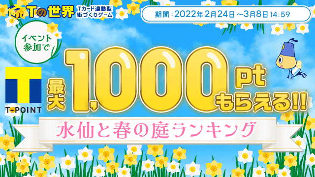■「Tの世界」水仙と春の庭ランキング開催中!条件達成でTポイントがもらえる新規応援キャンペーンを同時開催中