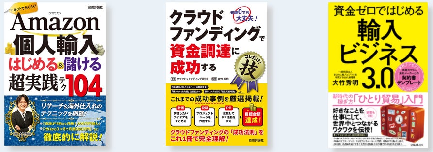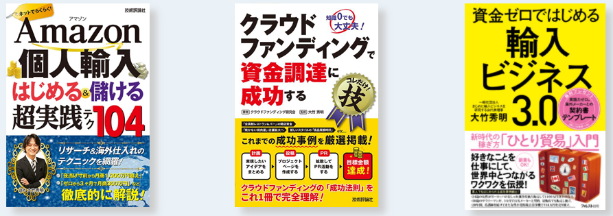 ・著書:「資金ゼロではじめる輸入ビジネス3.0」「クラウドファンディングで資金調達に成功するコレだけ!技」「Amazon 個人輸入はじめる&儲ける超実践テク104」(以上、技術評論社)