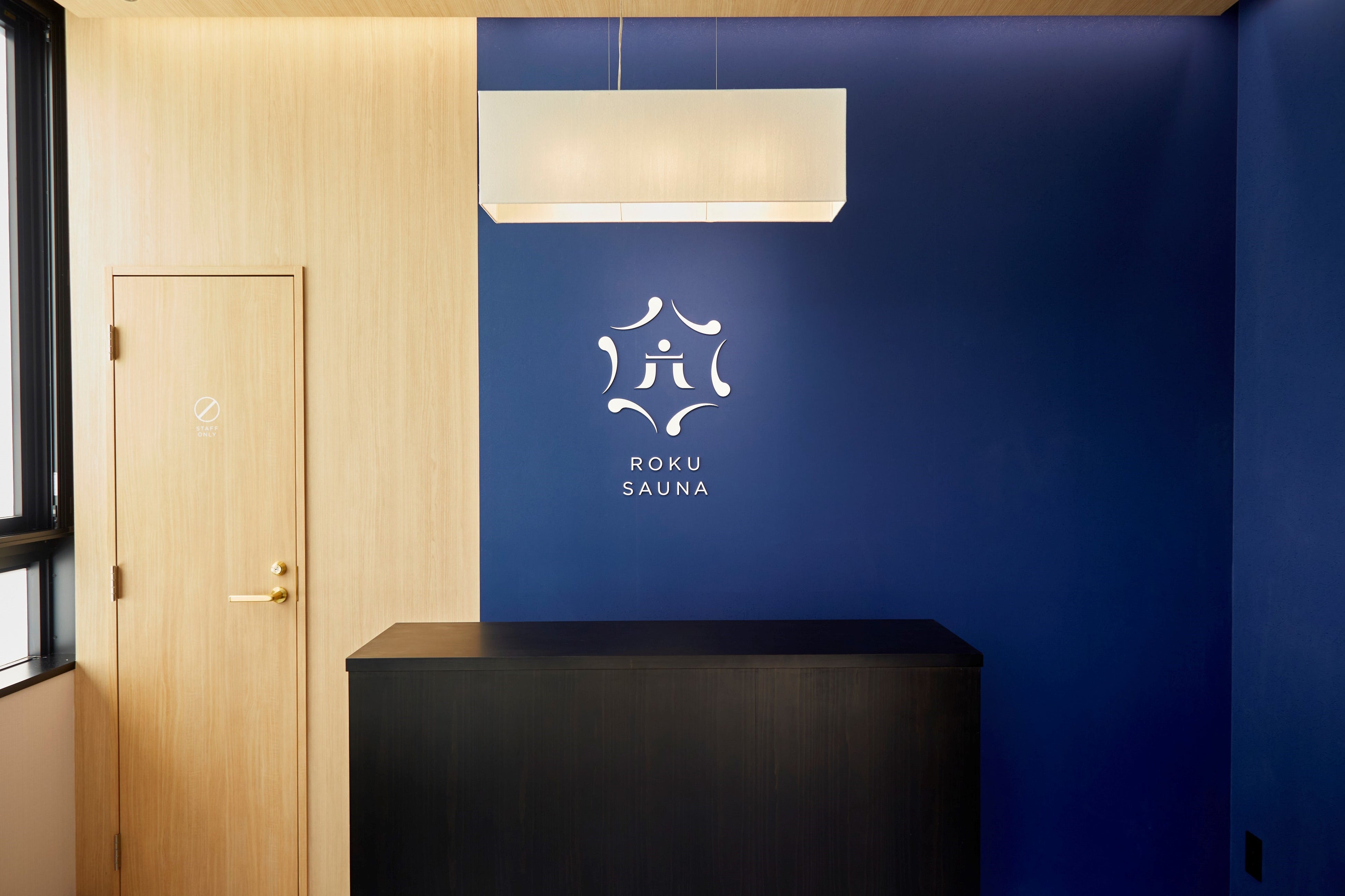 「ROKU SAUNA」という店名は、部屋が6つあることに始まり、五感を満たした先にある心身共に快調に感じられる感覚、いわば“六”つ目の感覚である「ととのう」を味わってほしいという想いを込めて名付けました。ブランドロゴデザインも、数字の6のフォルムを取り入れたオブジェクトを、漢数字の六の周りに六角形に組み、紋章のようにデザインしたものとなっております。また、漢字の六はサウナに入り、手を椅子についている人物のピクトグラムの印象をもたせております。