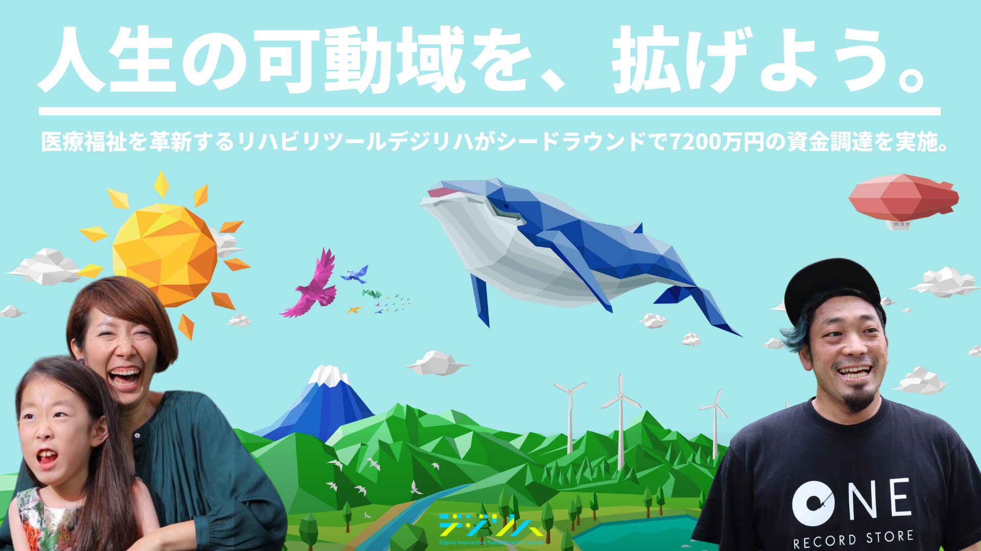 デジタルアートとセンサーを活用するリハビリツール「デジリハ」を運営する株式会社デジリハ(本社:東京都世田谷区、代表取締役:岡勇樹)は、株式会社taliki、株式会社バリュークリエイト、八十二キャピタル株式会社、個人投資家78名(株式会社CFスタートアップス運営のCF Angels(株式型クラウドファンディング)による資金調達)より、シードラウンドにおいて第三者割当増資及び融資より7200万円の資金調達を実施いたしました。開発の強化を通じて、障害児者から高齢者まで全ての人のリハビリをより楽しく、効果的にするために邁進してまいります。