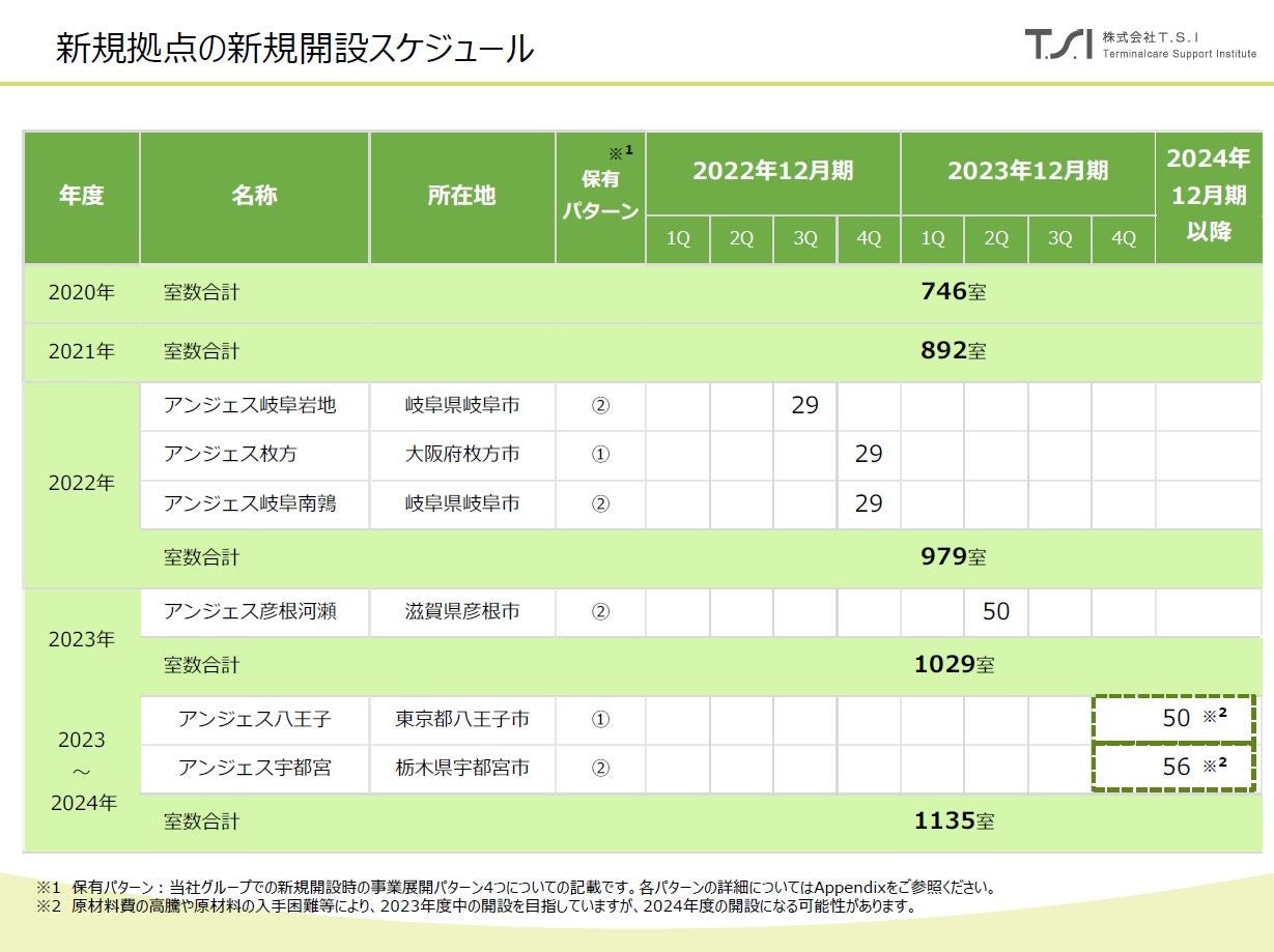 2023年~2024年で、大型の50室規模が新たに3棟開設で確定しております。