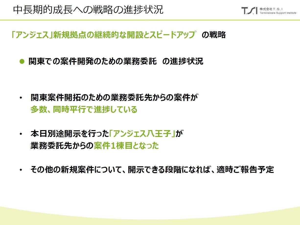 また関東への新規開設にもますます注力をしているところで、2022年第1四半期から関東案件開拓のための業務委託を開始しており、「アンジェス八王子」が業務委託先からの初成約案件となりました。