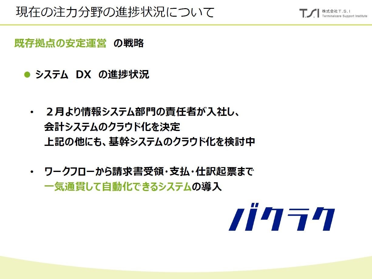 2022年8月16日、決算説明動画を配信しております。 https://www.t-s-i.jp/ir/news/