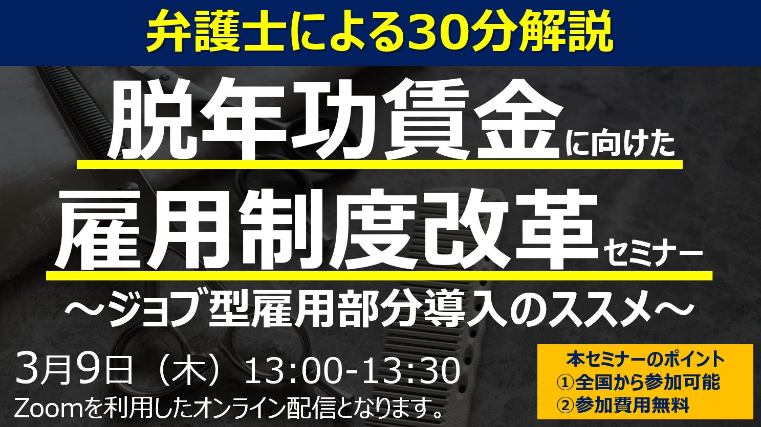 タイトル:「脱年功賃金に向けた雇用制度改革セミナー ~ジョブ型雇用部分導入のススメ~」