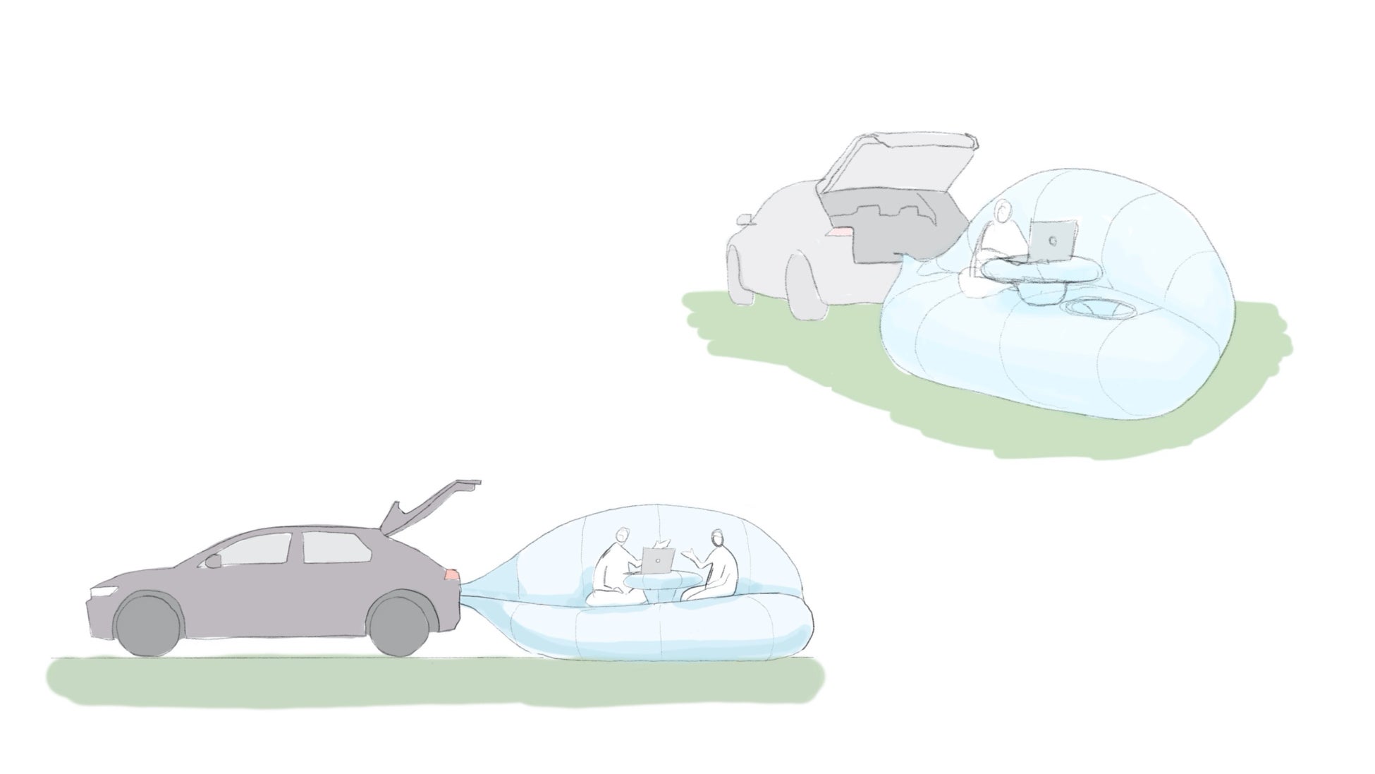 誰でも好きな場所で、IONIQ 5のV2Lを利用し空気で膨らませると、拠点を作れ、ワーケーションを可能にするプロダクトを開発。雲に乗るように自由に、好きな場所に拡散し、浮かぶようにWORKを、そしてLIFEを楽しむことができるプロダクトです。