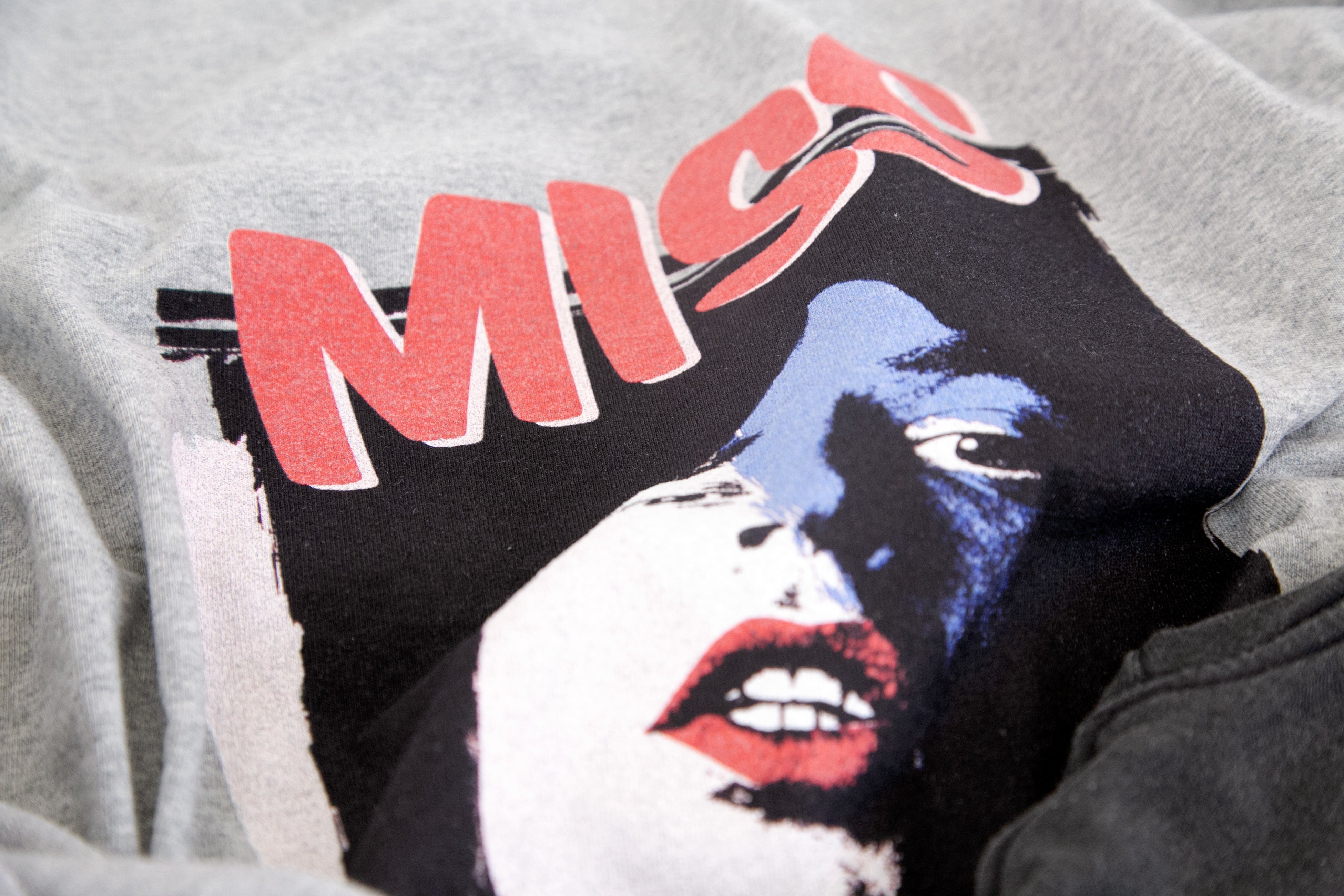 パンチのきいたMISS YOUのプリントが目を引く一着。