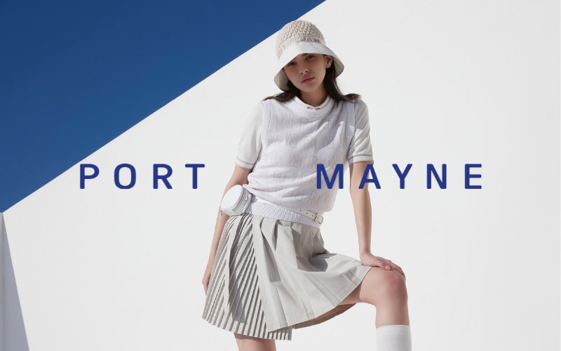 PORT MAYNE は、”EFFORTLESS(快適)”で ”LUXURY(優雅)”なライフスタイルを届けることをコンセプトとした、韓国とニューヨークで展開されているグローバルブランド。ゴルフクラブの生みの親 WILLIAM MAYNEの名前から「MAYNE」を拝借し、アメリカ東部にある港町 PORT HAMTONの穏やかなイメージを併せた意味から「PORT MAYNE」と名付けられました。