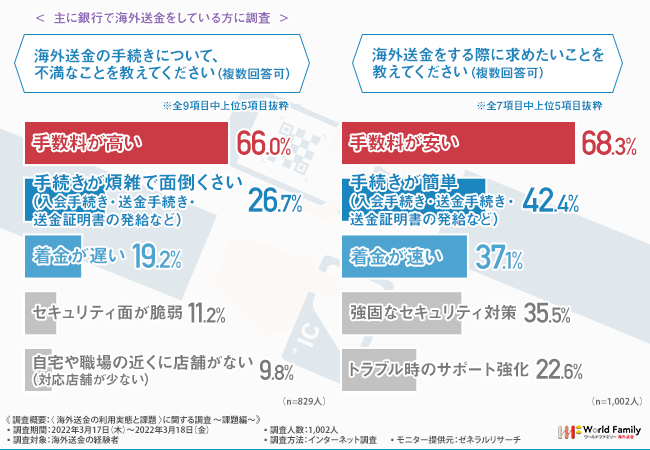 前回公表した調査レポートにもある通り、調査では、海外送金の経路(方法)として銀行を利用している方が非常に多いことがわかりましたが、手続きについて不満を抱いている方もいるでしょう。