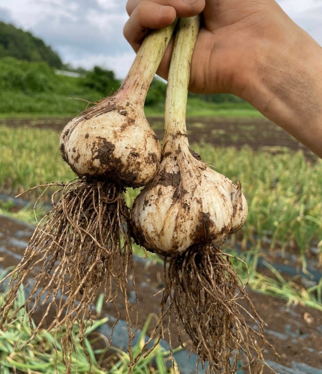 スタッフ自らが青森の契約農家へ足を運び収穫するこだわり抜いた最高級にんにく。