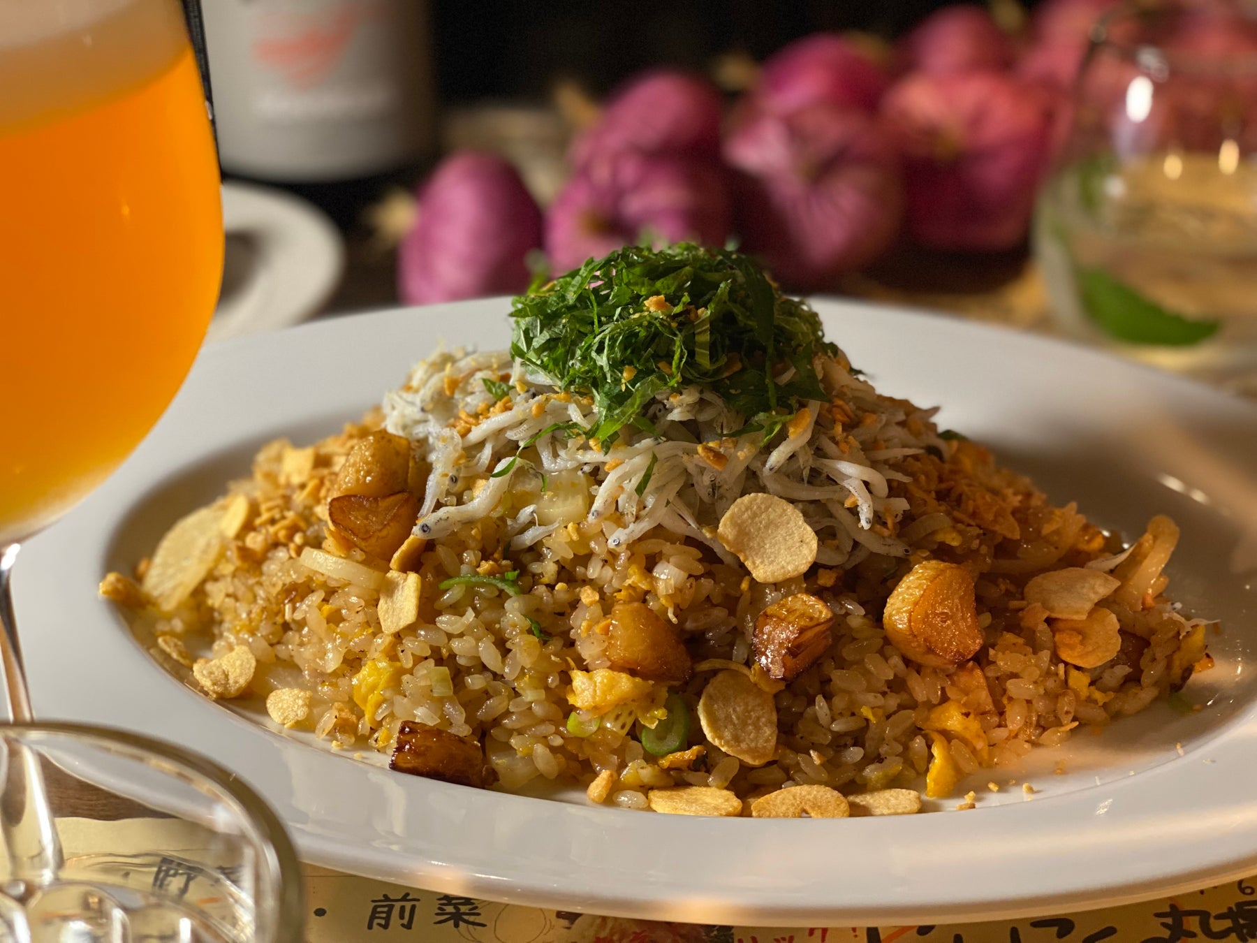 沢庵やシソ、釜揚げしらすなどの"和食材"を組み合わせたガーリックライス。自家製のガーリック調味料で生み出す絶妙な味わいをお楽しみいただけます。