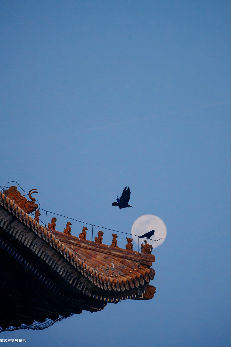 右の写真は、一般の観光客がなかなかみることのできない故宮と秋の満月を捉えた一枚です。故宮建築の屋根には、ユニークな神話動物が飾られています。