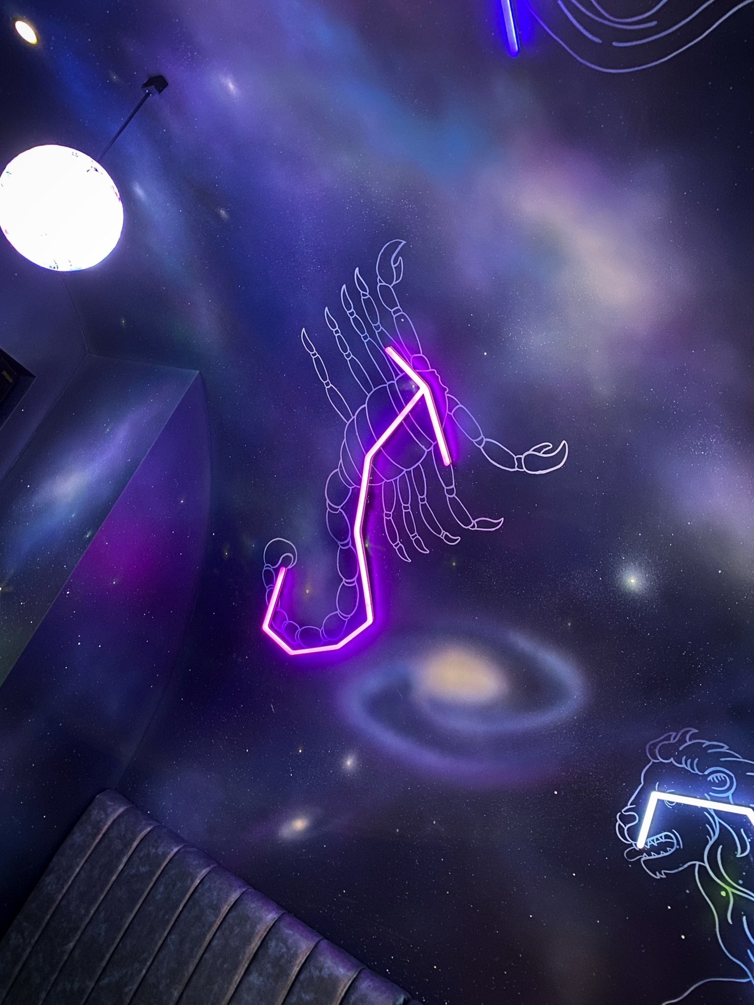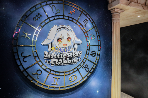 リトルスターラビットは「星とうさぎ」をコンセプトにした新しいコンセプトカフェ(メイドカフェ)です。宇宙空間を模した天井や壁には、巨大な12星座が散りばめられており、つい足を運びたくなるワクワクしたデザインとなっています。