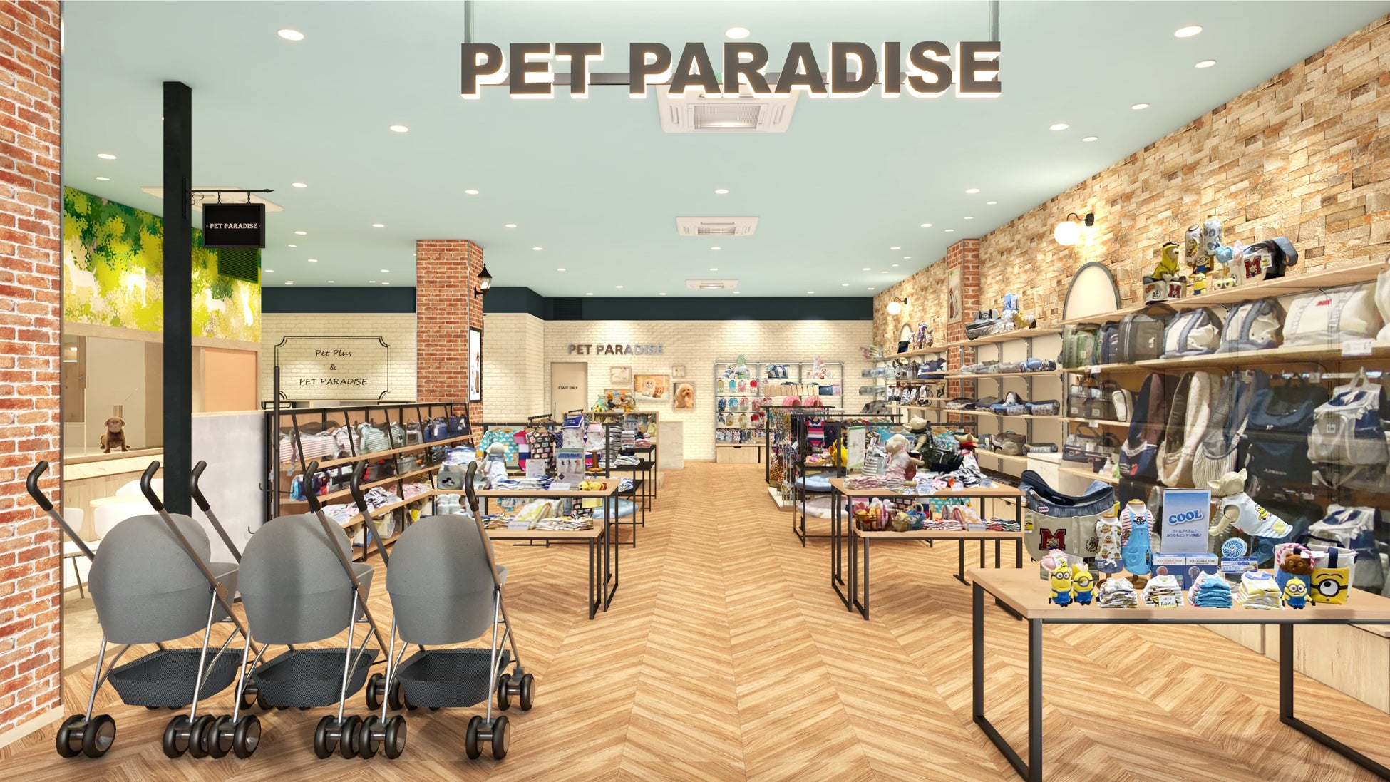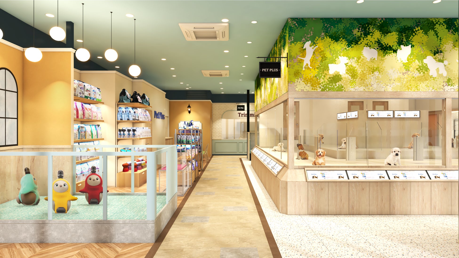 ペット用品やトリミングサロン、家族型ロボット「LOVOT」の体験スペースも併設