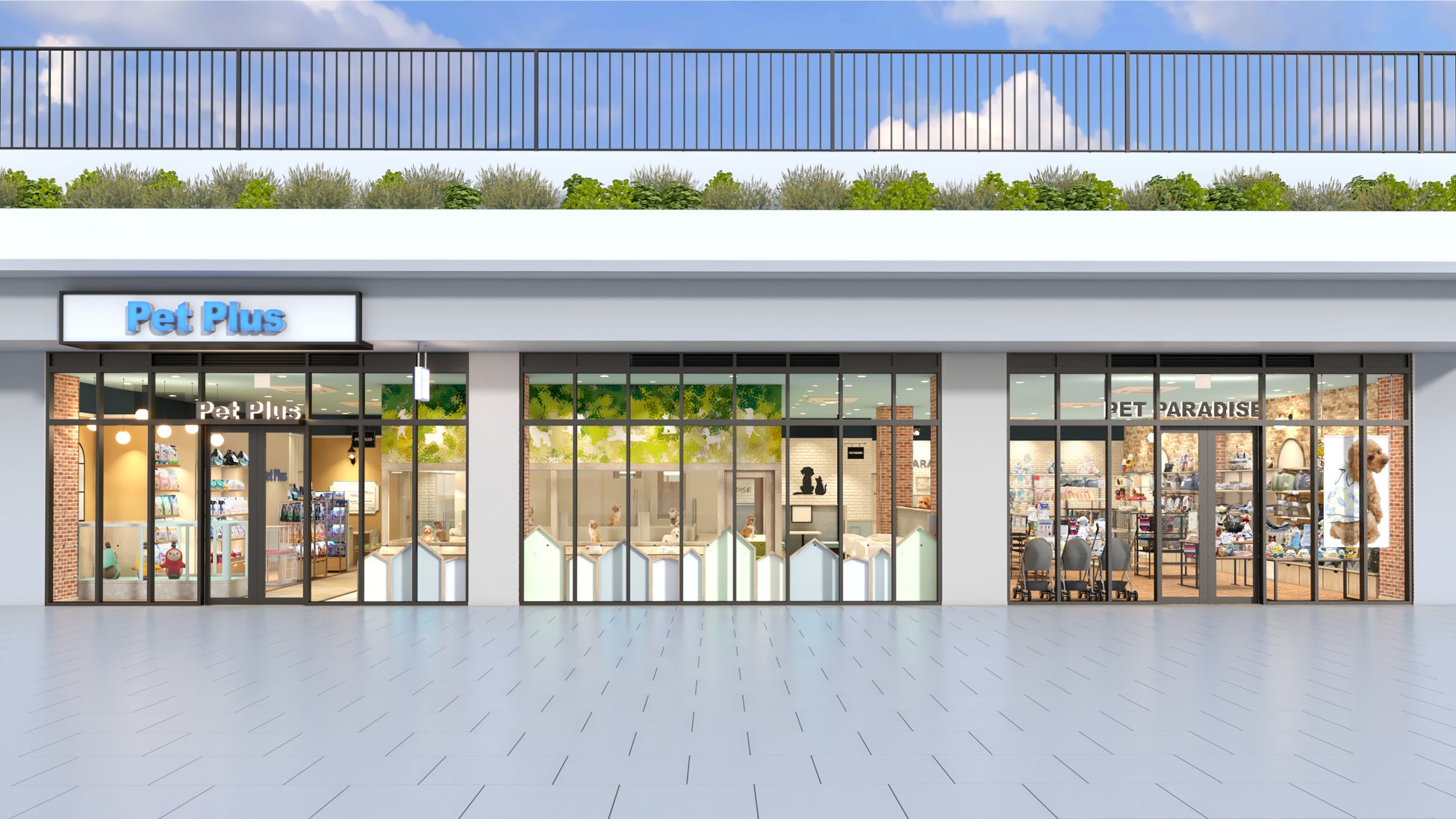 1階広場前に位置する開放的な売り場を活かし、緑や木々を使った内装で統一しています。そして、ペットプラスの特徴の一つである大きなガラス面を採用したラウンド型プレイルームは ワンちゃんネコちゃんがのびのびと生活し、健やかに育ってほしいという願いを込めて、大樹をイメージした作りとなっています。また、全国のペットプラスでは初めてとなる360度のデジタルサイネージを設置し、ワンちゃんネコちゃんの体重や健康状態を可視化するとともに、分かりやすくご覧いただくことができる店舗設備やLEDを用いた演出照明、様々な企業様とのコラボレーション企画など、ご来店いただく全てのお客様に新たな体験・経験を提供し続けることを目指した店舗となります。さらに健康志向のプレミアムフードや獣医師監修のおいしさだけでなく、健康を追求したペットプラスのオリジナル冷凍ごはん、安心安全な植物性たんぱく質で作られた手作りおやつの取り扱いもございます。