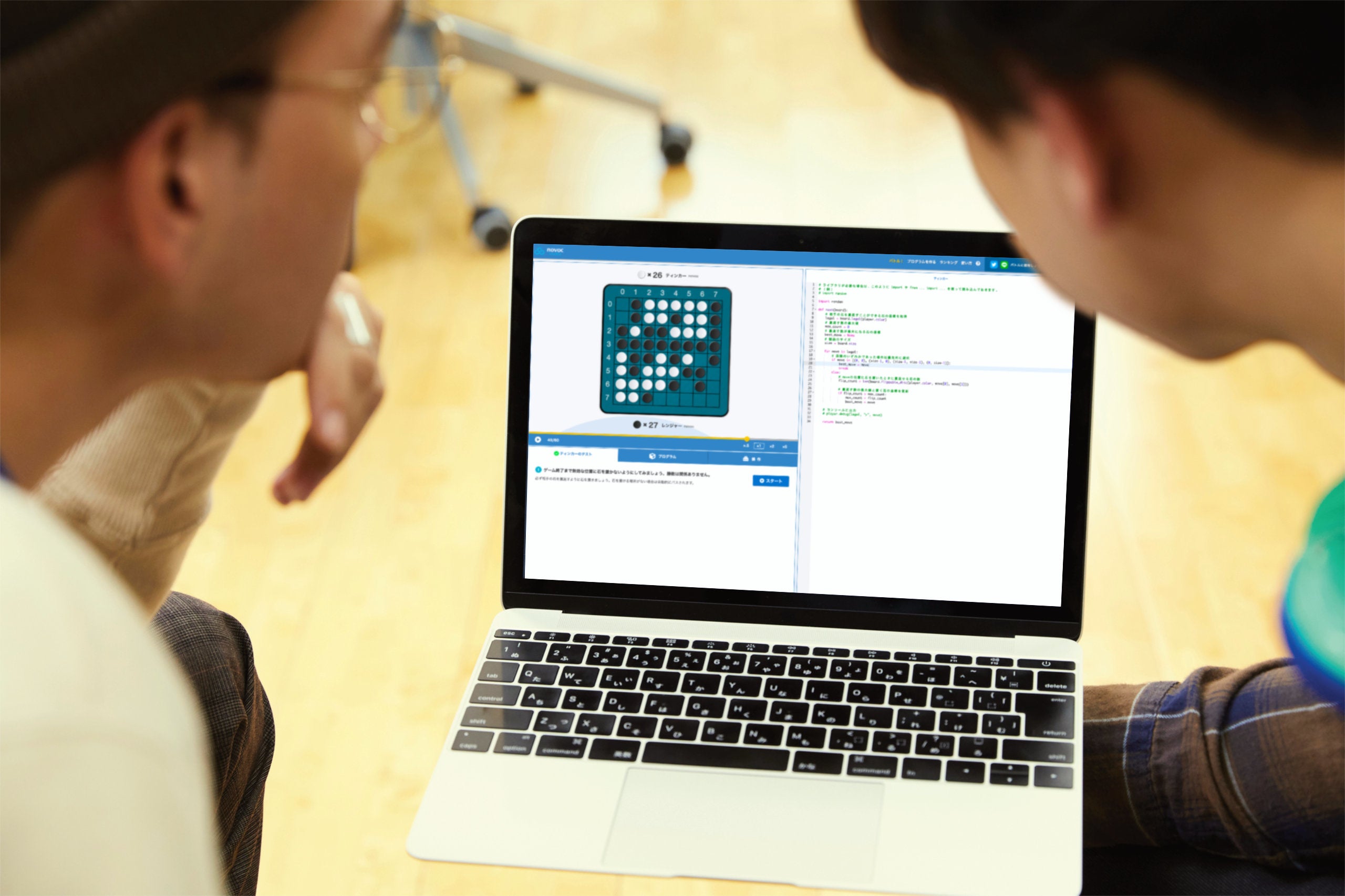 同時にスキルの高いユーザーも、探索アルゴリズムを駆使した本格的なオセロAIを実装して、ゲームAIコンテストに参加するように、手軽にプログラミングスキルを競い合うことができます。
