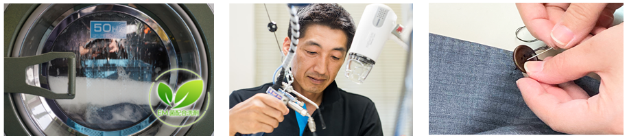 専門スタッフが洗う前に汚れ具合や破れ・ボタンの有無などを厳しい目でチェックし、シミなどがあった場合は、無料で熟練の職人により丁寧にシミを落としてお客様のもとにお返しします。