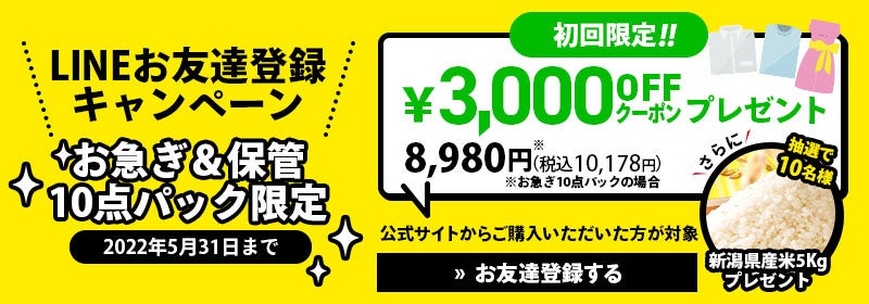 現在、オープニングキャンペーンとして、宅配クリーニング十兵衛の公式LINEとお友達になることで、「お急ぎ・保管10点パック」で利用出来る3,000円OFFクーポンがもらえるキャンペーンを実施中です。