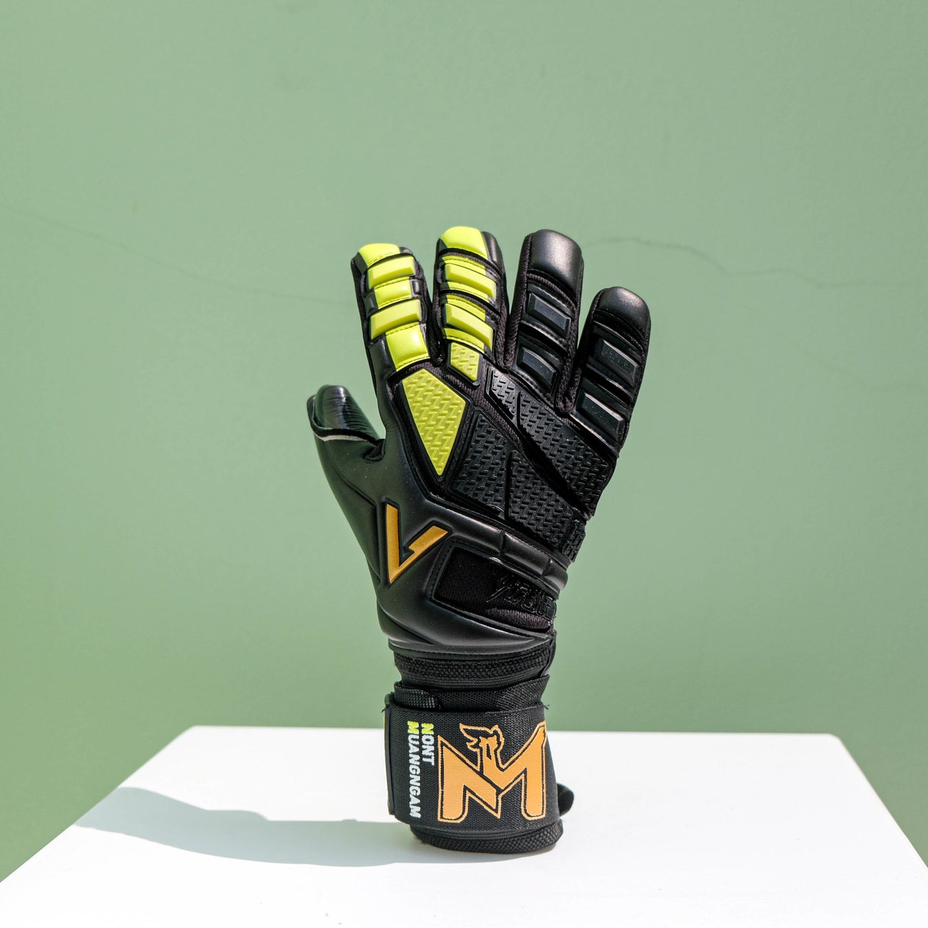 タイのレジェンド級のキーパーであるSinthaweechai選手と開発したモデルです。ロールカットにドイツ製のAAGパームを使用。AAGパームは、雨のときでも最高のグリップ力を発揮し、柔らかくて気持ちいいパームです。手首のところまでパームがあるのでキャッチングに安心。ストラップの巻き方を変えればパームを中にしまうこともできます。また、バックハンドのところには切り込みが入っていて、自由に拳を握りやすく工夫してあります。