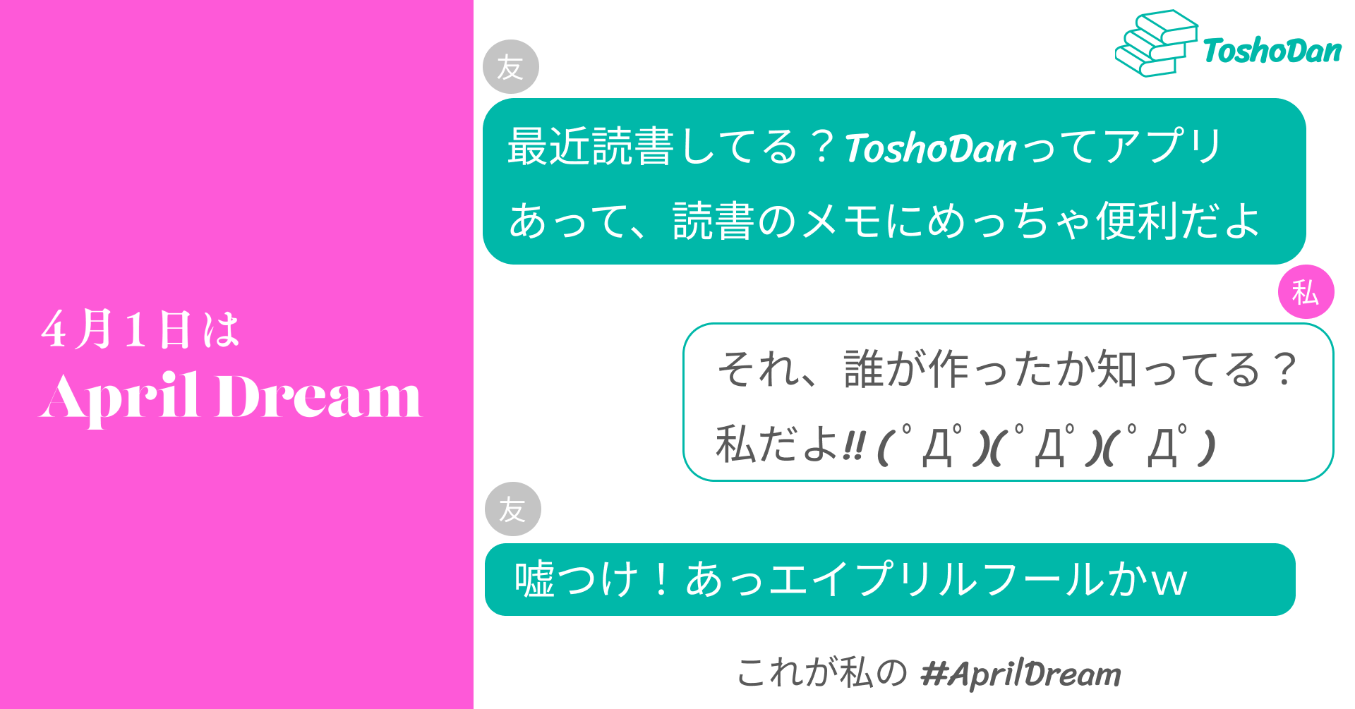 当社は、4月1日を夢を発信する日にしようとするApril Dreamに賛同しています。このプレスリリースは「ToshoDan(トショダン)」の夢です。