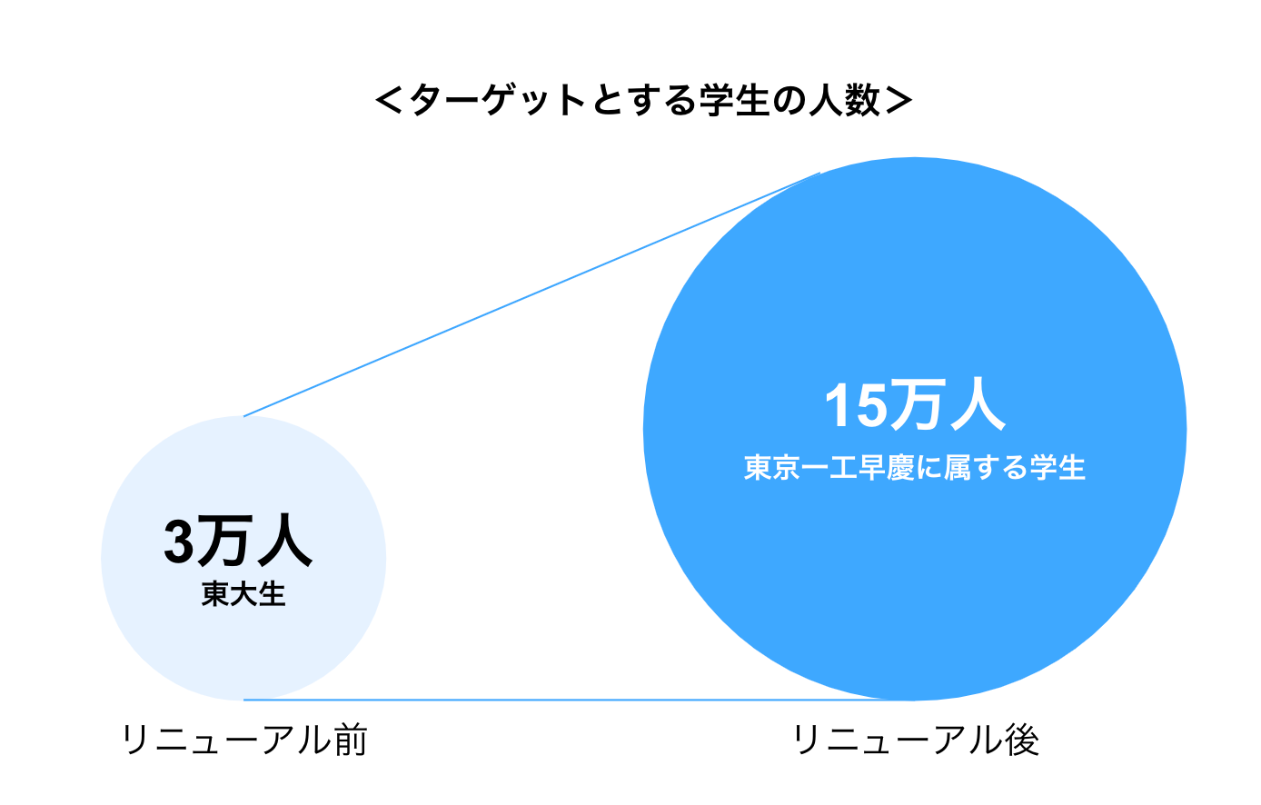 学生ユーザー数、掲載企業様増加に伴い、東京大学の学生だけでなく、東京大学、京都大学、一橋大学、東京工業大学、早稲田大学、慶應大学等の大学に所属する優秀な学生のサポートをすることで、当社のミッションである「Broaden your Potential」を実現したいと考え、今回のリニューアルに至りました。