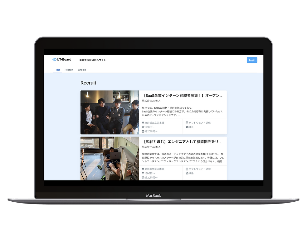 「UT-Board」は、高学歴の学生を中心とした優秀な学生と、東大発スタートアップから上場企業までの様々な優良企業とのマッチングを支援するサービスです。