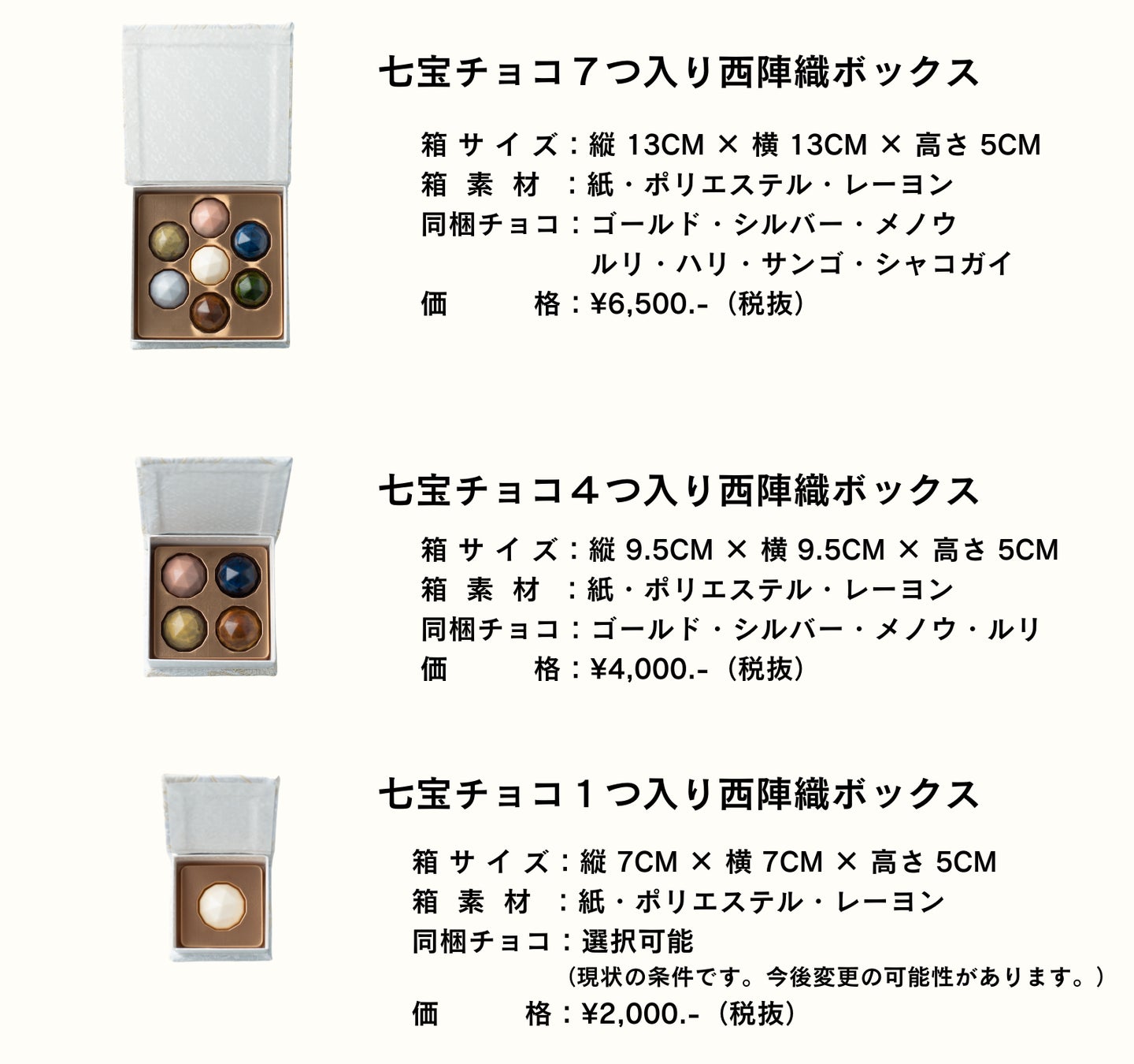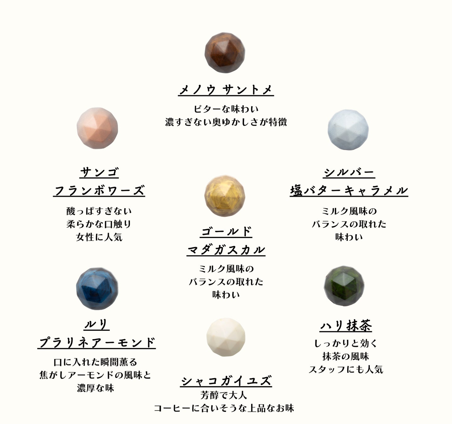 7色の宝石を表現することで、チョコレートでも華やかさと大切なご縁に寄り添いたいと考えています。