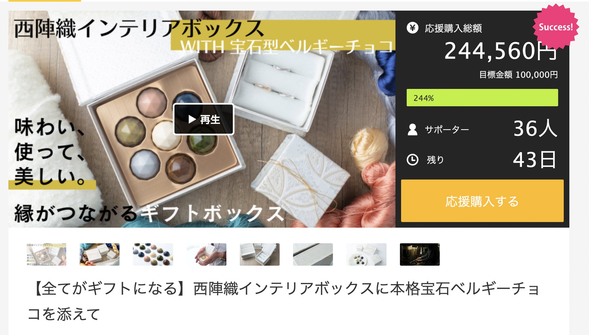 【京都の新定番スイーツギフトに】Makuakeにて30分で目標達成!西陣織のインテリアボックスに本格派宝石チョコを詰めたギフトボックスを販売!