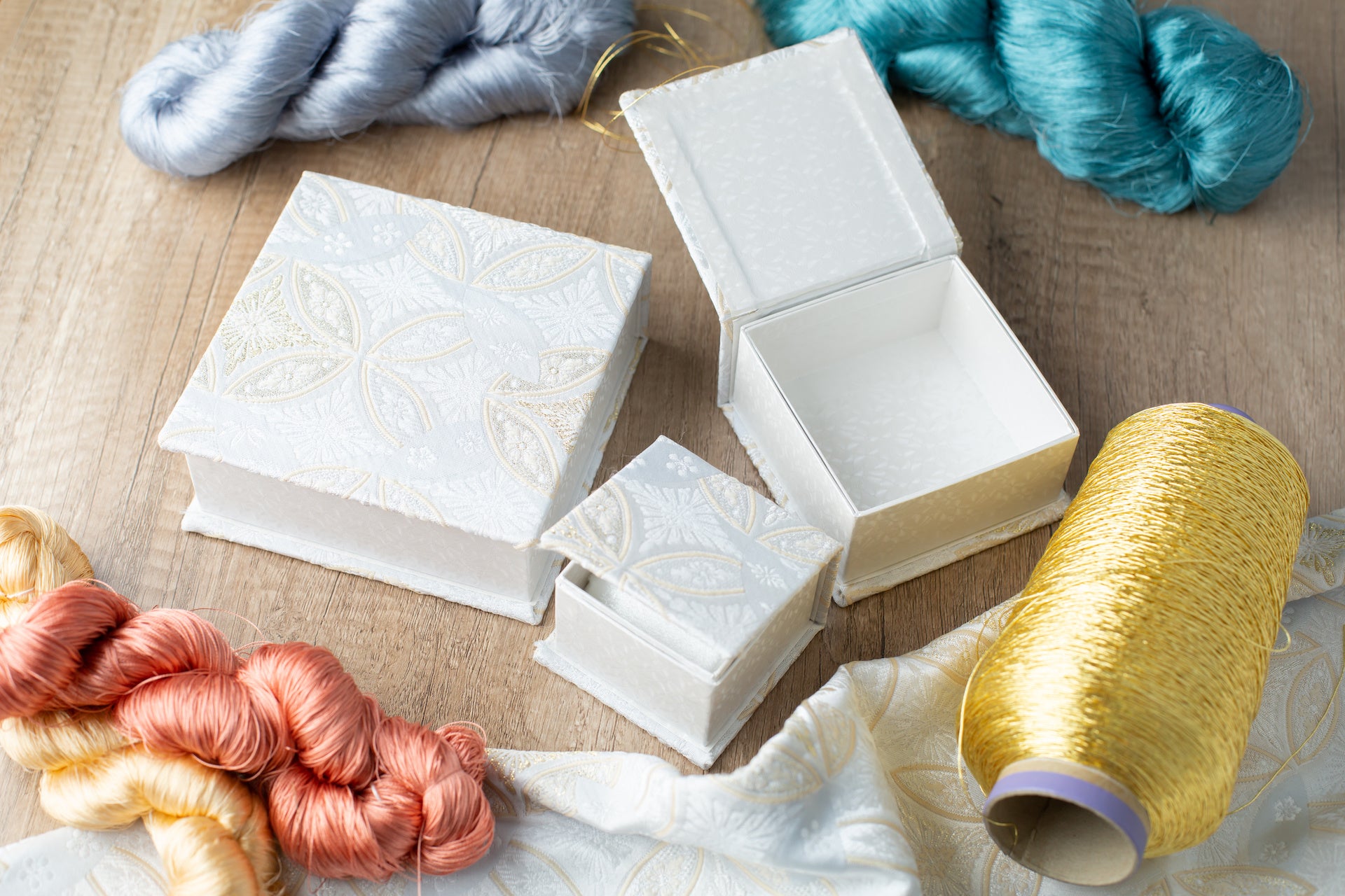 生地の制作・箱への加工は全て日本の職人が行っており、いづれも京都で生産を行なっております。
