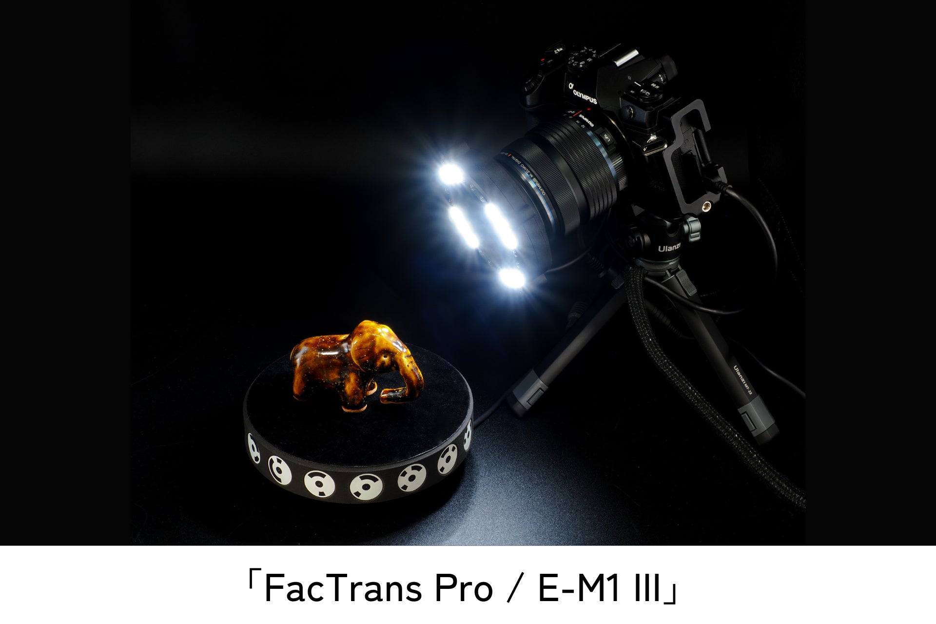 「FacTrans Pro / E-M1 III」は、ターンテーブルを自動制御、自動撮影することにより、様々な被写体で3D撮影を効率良く撮影することができます。
