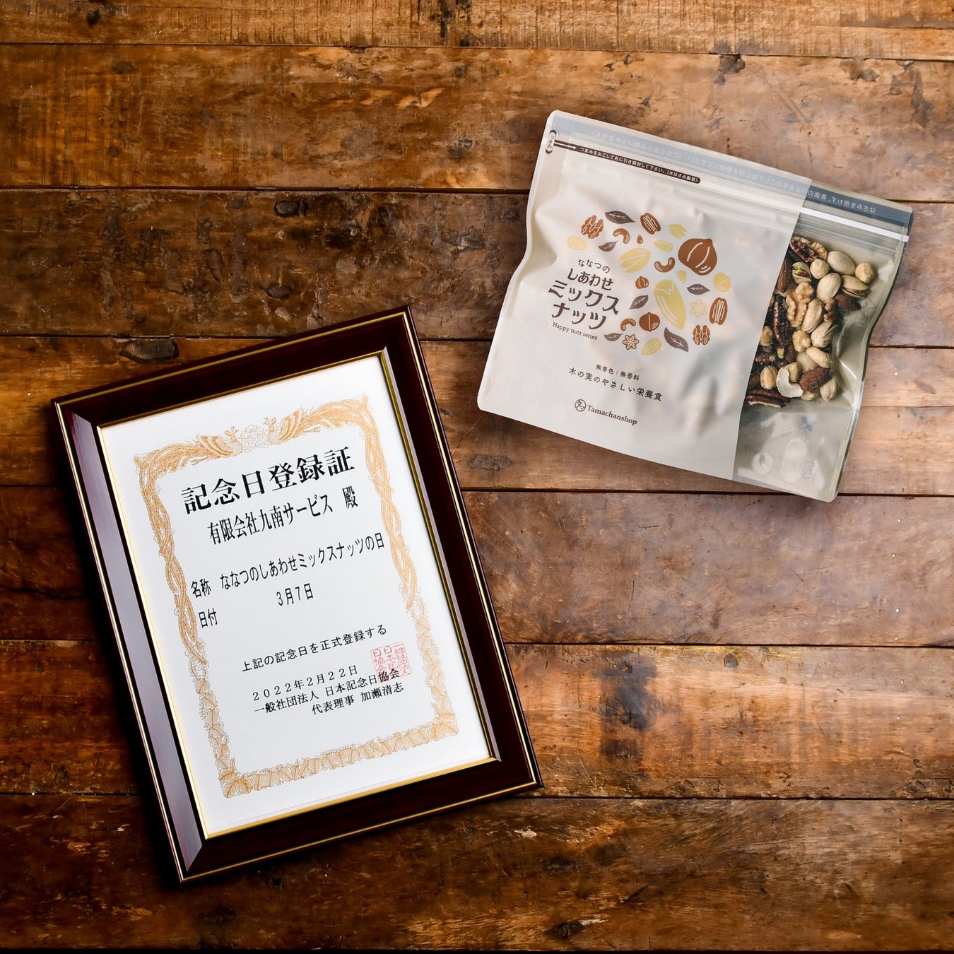 オンラインストアを中心に自然派食品ストア「タマチャンショップ」を運営する有限会社九南サービス(本社:宮崎県都城市、代表取締役:田中 茂穂)は、この度一般社団法人日本記念日協会を通じて、3月7日を「ななつのしあわせミックスナッツの日」と登録しました。