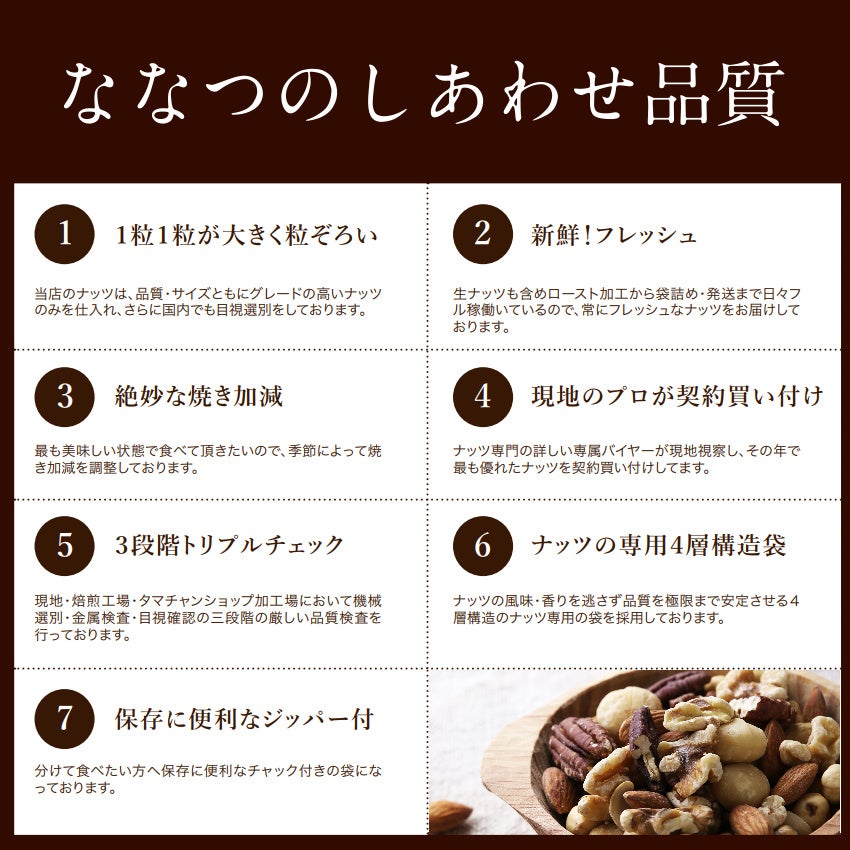 タマチャンショップが高品質の7種類のミックスナッツを、自信を持ってお届けします!
