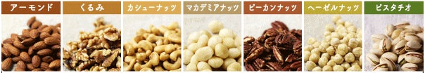 世界各国から仕入れた厳選した7種類のナッツ(アーモンド・くるみ・カシューナッツ・マカデミアナッツ・ピーカンナッツ・ヘーゼルナッツ・ピスタチオ)をミックスしています。