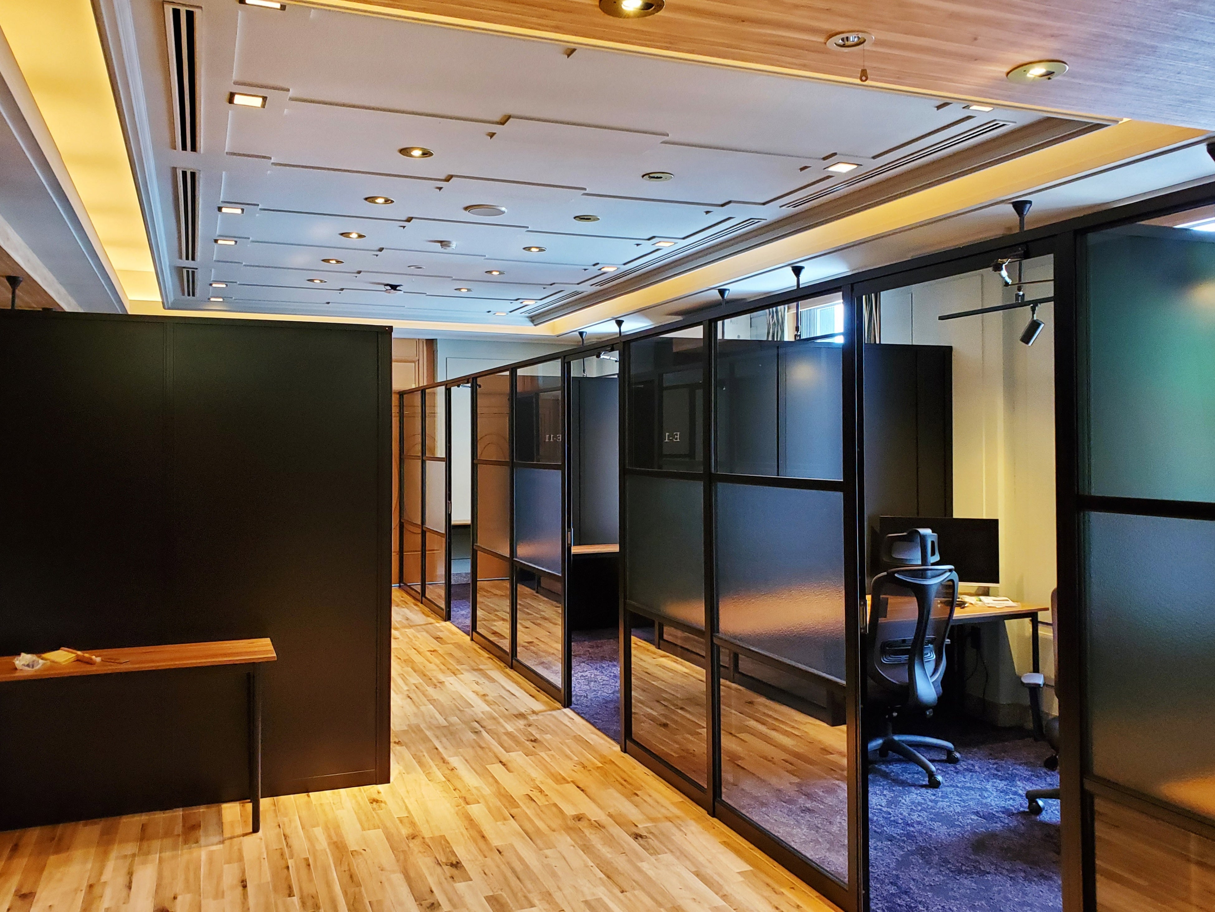 ESVでは、全19室の個室ワークスペースをご用意しました。1名用個室は4.6㎡~5㎡、2名用には5㎡~6㎡、4名用10㎡、6名用12㎡、最大で14名用36㎡と、様々なタイプが揃います。無線LANでの通信速度は最低保証100Mbps以上を確保し、ストレスのないPC作業にWEBミーティングと、存分に仕事に集中することができます。個人ブースの他にも、同等の通信環境が整うフリースペースエリアも用意されています。
