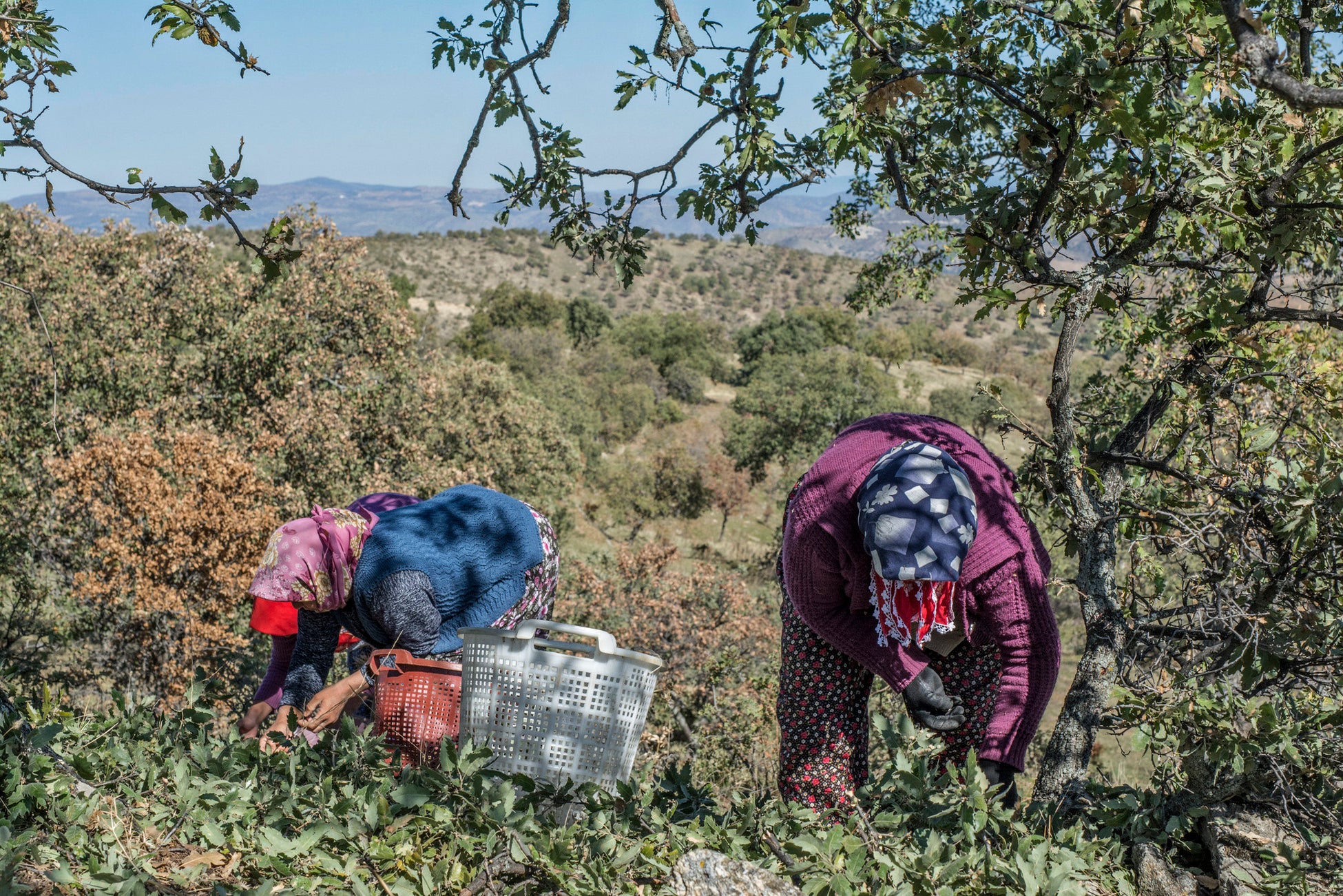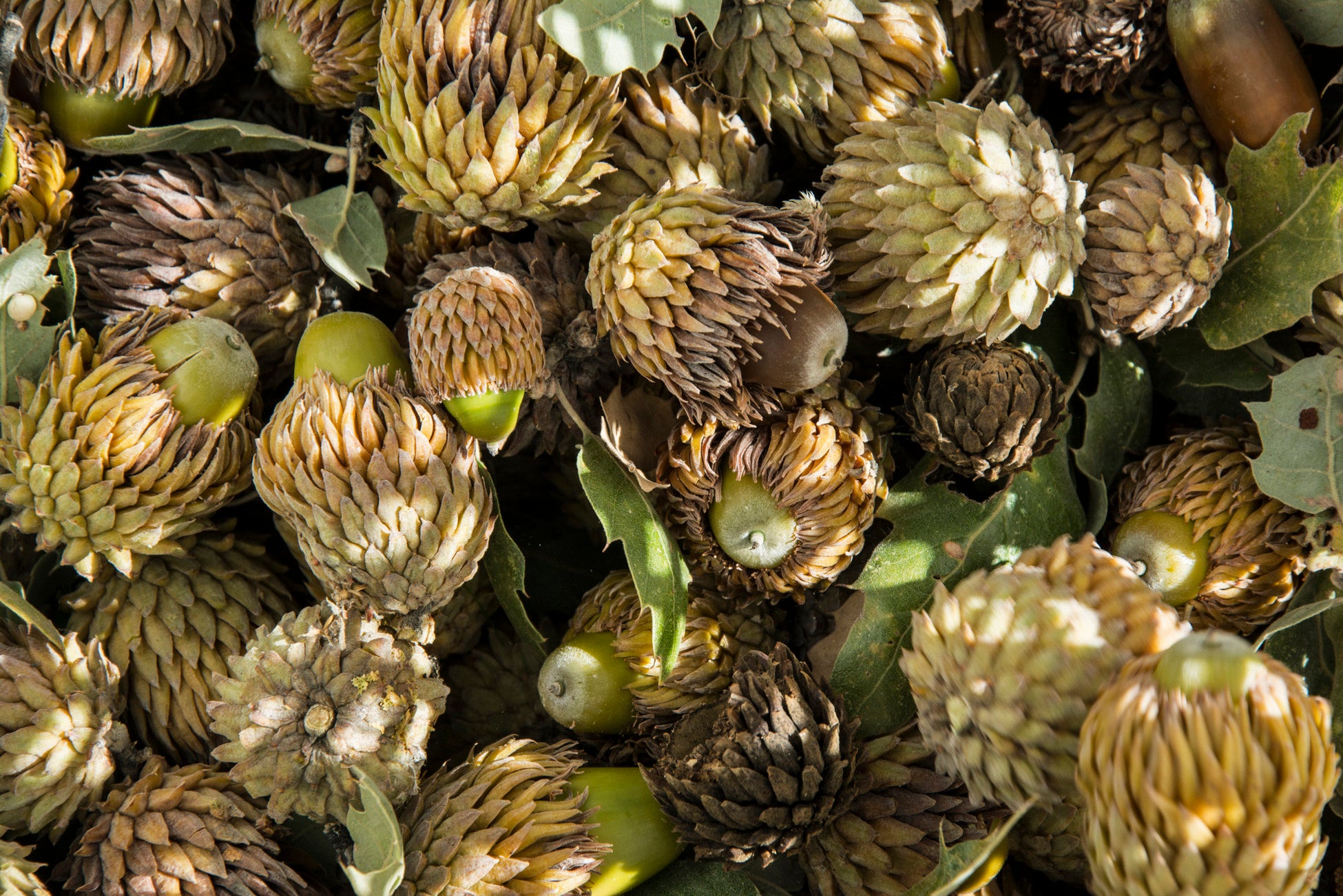 一般的なヌメ革で使用される植物タンニン剤は、専用に栽培した植物を原料として使用します。一方、ペリット・クプールでは森で自然に落ちているどんぐりを拾い集め、タンニン剤として活用しています。原料となる植物を育てるエネルギーが不要なため、よりサステナブルな製造が可能になります。