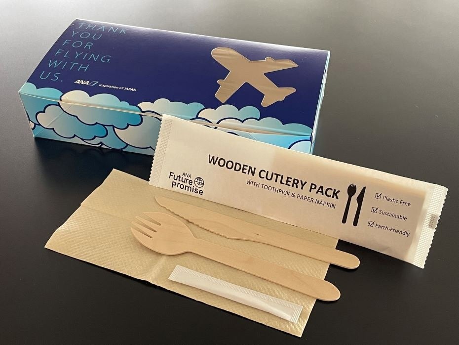 空港ラウンジや機内で使用しているすべての使い捨てプラスチック製品を紙やバイオプラスチックなどの環境配慮型素材に変更するなど、プラスチック使用量の削減に取り組んでいます。また、ANAは2021年8月より順次、日本の航空会社として初めて、国際線エコノミークラス機内食の主菜容器をプラスチック製から地球環境に優しいバガス素材(サトウキビから砂糖を精製する際に残る茎や葉)に変更しました。