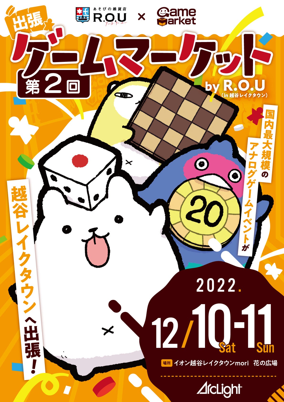 R.O.U 株式会社(アール・オー・ユー)(本社:千葉県千葉市 / 代表:藤永 紀仁) はR.O.U イオンレイクタウンにて2022年12月10日(土)・11日(日)の2日間、国内最大アナログゲームの祭典「ゲームマーケット」の出張版「出張ゲームマーケット」を開催いたします。